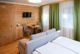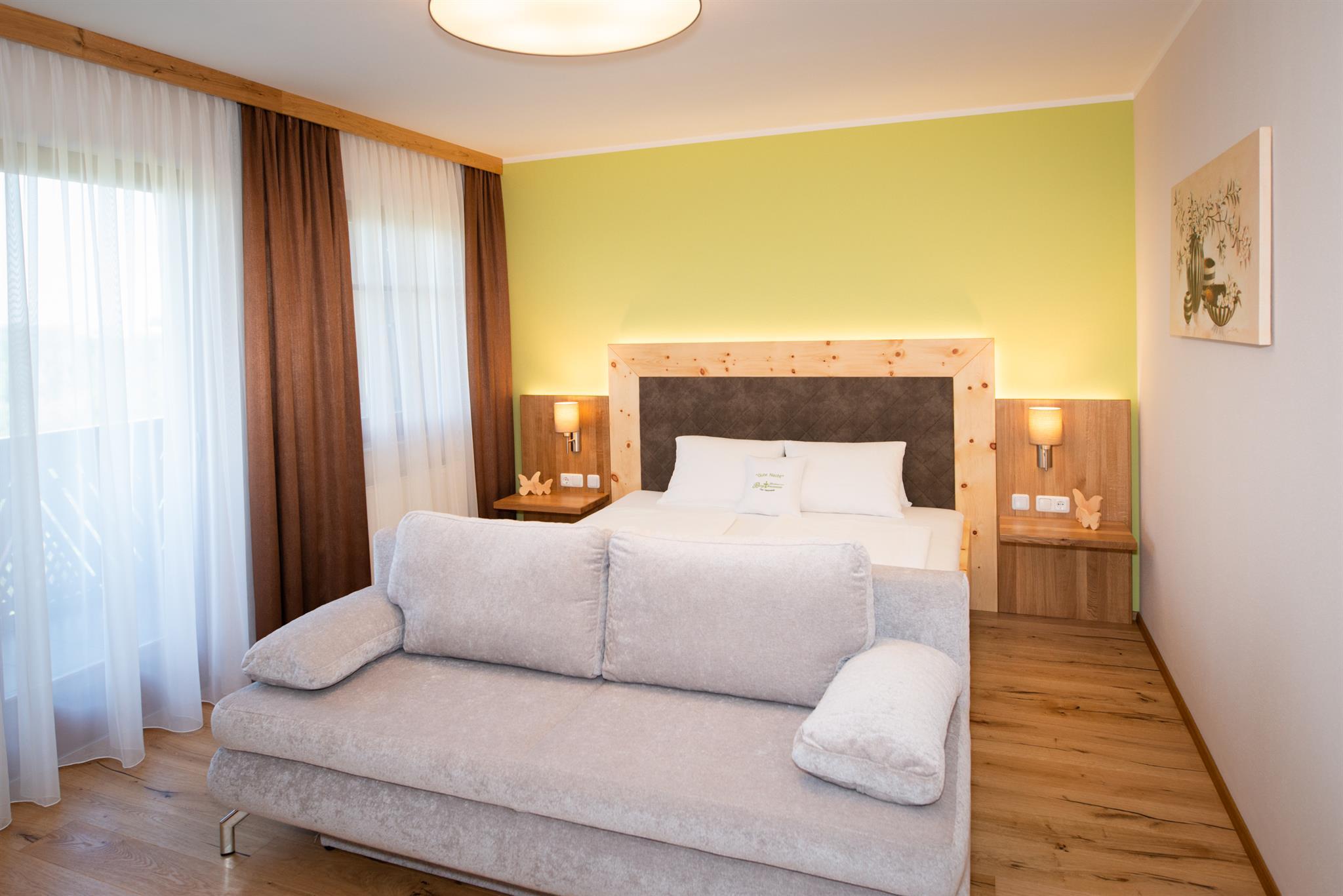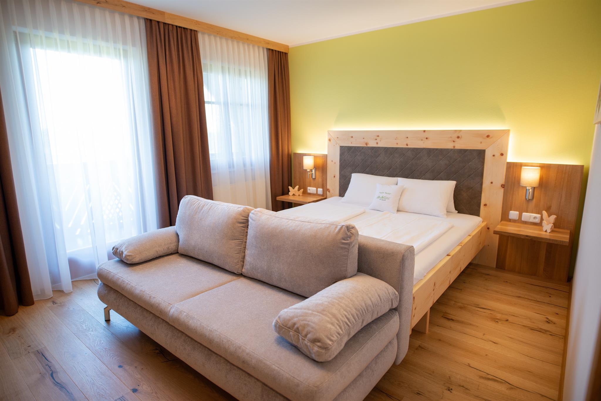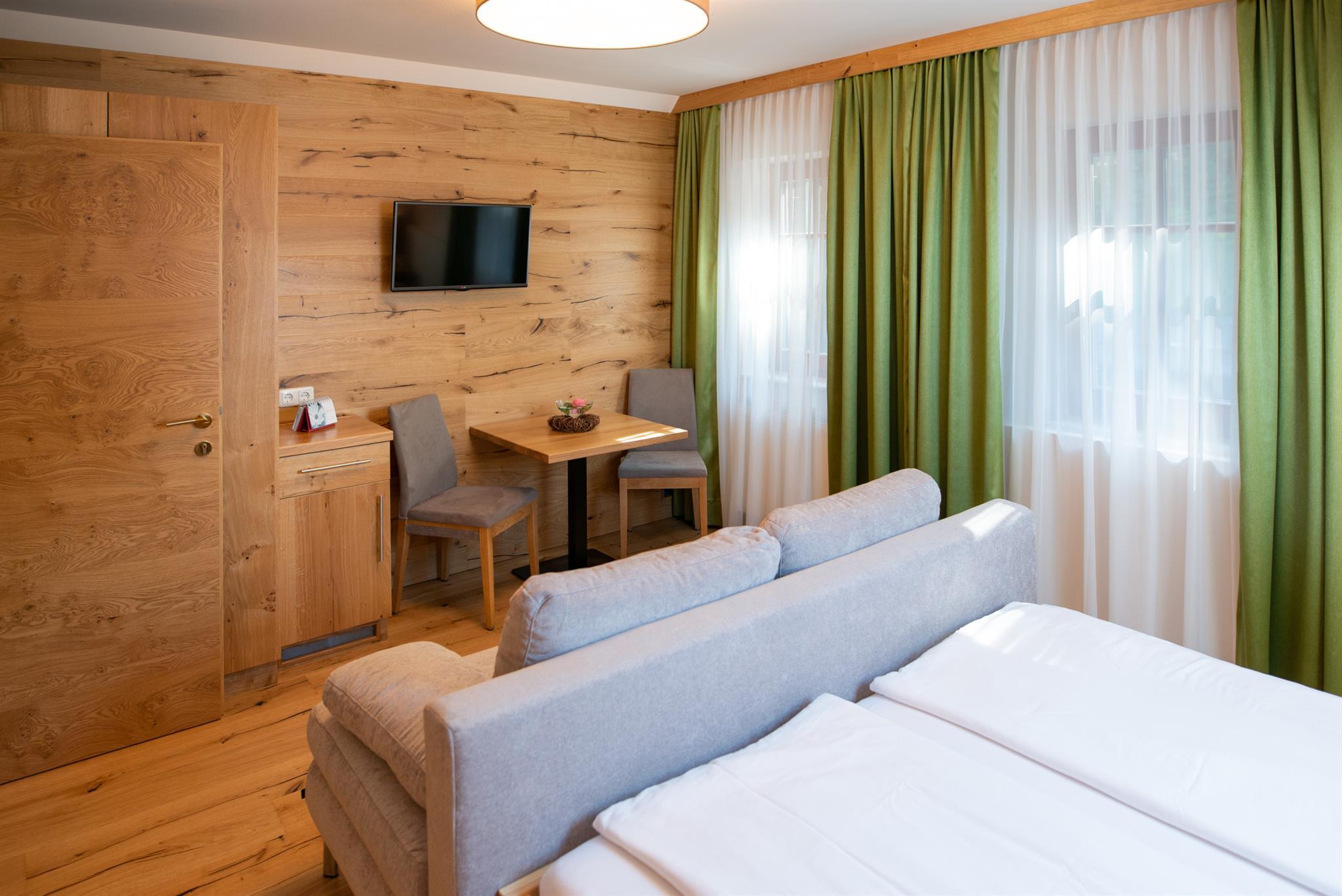 Die 2018 neu renovierten, mit Massivholz Zirbenbetten und Eichenholz Möbel eingerichteten Zimmer sind mit eigenem Vorraum, Bad & WC, SAT-TV und Teletext, WLAN, Gästekühlschrank, Zimmersafe, gemütliches Sofa & Haarfön ausgestattet.