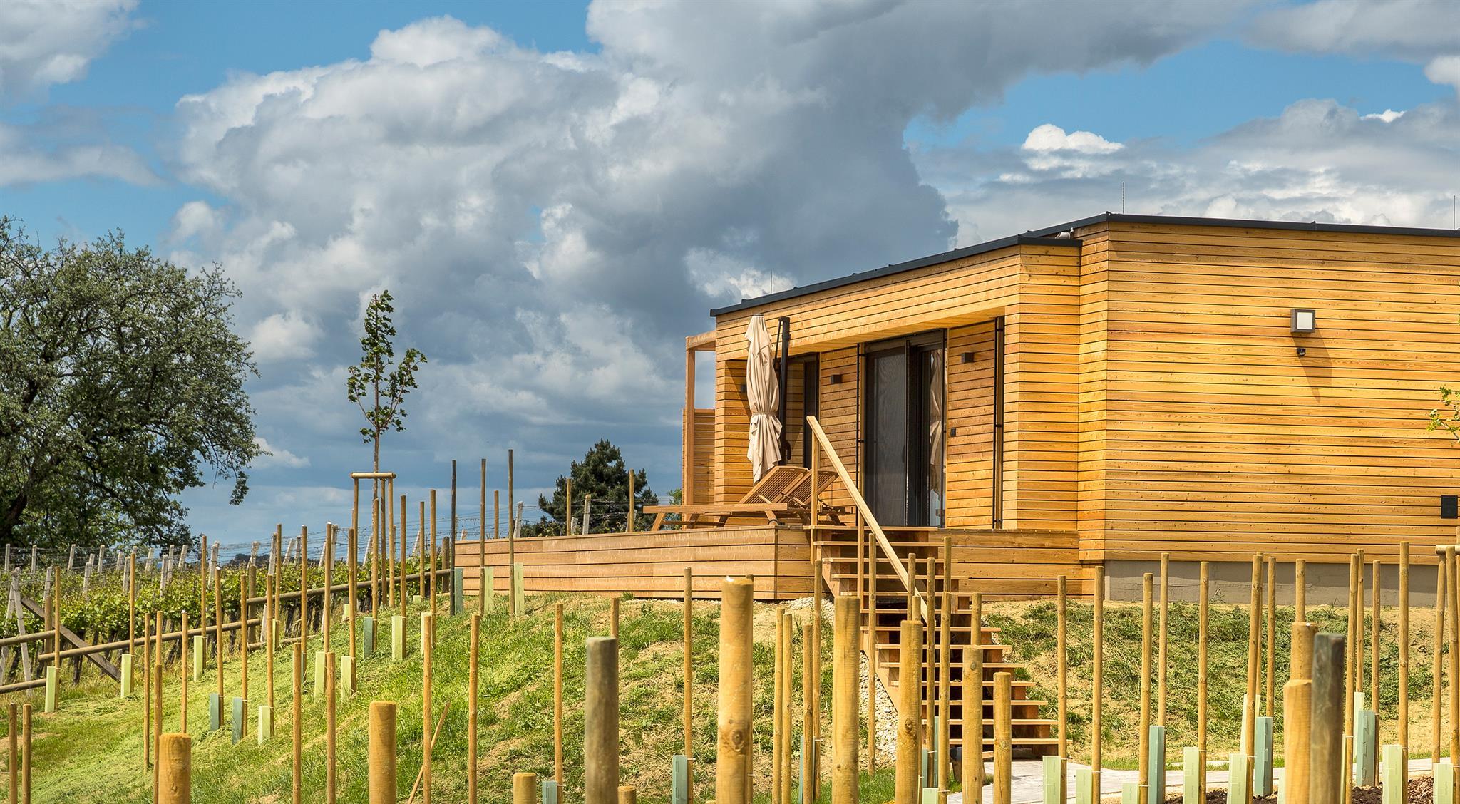 Schier unendliche Weinreihen, die sich wie Perlen an einer Kette aneinanderreihen. Die sanfte Hügellandschaft der Südoststeiermark. Und mittendrin das Weingarten-Resort Unterlamm Loipersdorf. Wenn moderne Architektur und unberührte Naturlandschaften aufeinander treffen, dann ist man angekommen im Weinurlaub im Süden Österreichs. Die absolute Ruhelage begeistert Erholungssuchende von der ersten Minute an. Hier ist man auf „Du und Du“ mit der Natur. Alleine und doch bleiben keine Wünsche offen! Insgesamt erwarten vier exklusive Ferienhäuser unsere Gäste aus Nah und Fern. Jedes WeinHAUS zeichnet sich dabei durch klare Linien, ein gemütliches Ambiente und einen Urlaub mit Hotel-Komfort aus. Für noch mehr Privatsphäre sorgt die großzügige Sonnenterrasse mit 55 Quadratmetern, mit der jedes WeinHAUS ausgestattet ist. Im Inneren der Premium Apartments stehen auf 40 Quadratmetern zwei Schlafräume, eine Designer Küche und ein modernes Duschbad mit Regendusche bereit. Nicht zu vergessen der grandiose Ausblick auf die umliegenden Weinberge. Die großen Fensterfronten lassen innen und außen, Natur und Wohnen, zu einem großen Ganzen verschmelzen. Entspannte Tage stehen Ihnen bevor, herzlich willkommen im Weinurlaub!