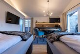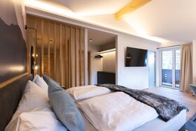 Unser Mountainy - Apartment mit Bergblick ist ideal für Familien und Freunde, verfügt über 2 komfortable Boxspringbetten, 1 Bad mit Regendusche, 1 separates WC, moderne Küchenzeile, großer Essbereich, Balkon mit herrlichem Ausblick, WIFI.