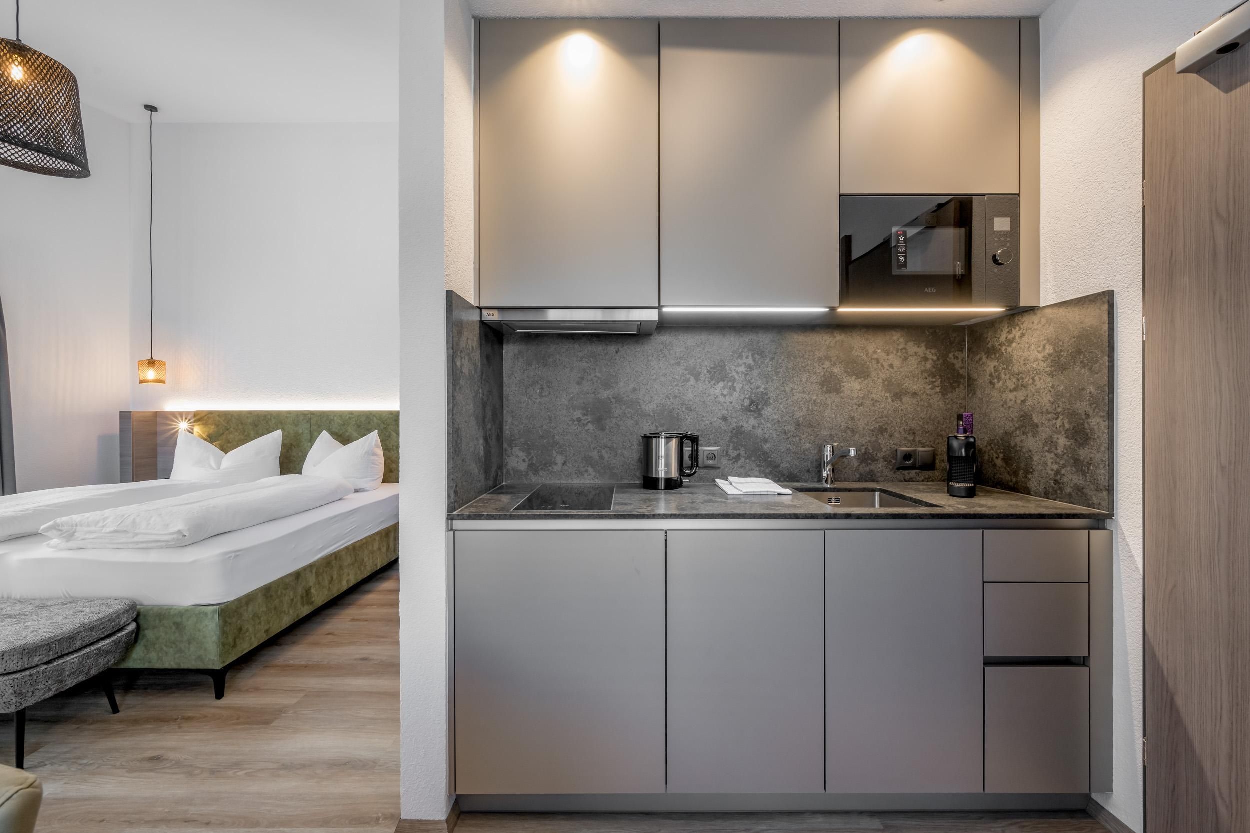Ideal für Paare oder Alleinreisende: Das 26-m²-Studio Söldenkogel bietet ein Doppelbett im Wohnbereich und eine moderne, voll ausgestattete Wohnküche mit Nespresso-Maschine, Ceranfeld, Mikrowelle, Geschirrspüler und Wasserkocher. Ein Bad mit Dusche/WC und Haarföhn sorgen für Komfort. Highspeed-WLAN, Kabel-TV mit über 300 Sendern, Safebox und ein kostenfreier Tiefgaragenplatz sind inklusive. Der Ostbalkon mit gemütlicher Sitzgelegenheit macht das nachhaltige Green Appartement mit Umweltzeichen zu einem stilvollen Rückzugsort in Sölden.