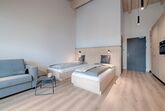 Unsere großzügigen 1 Zimmer Apartments punkten mit trennbaren Doppelbett, gratis WLAN, neueste Technologie (elektronischem Zutrittssystem, mobiler Handy Schlüssel), großen Terrassen oder Balkonen und einem besonders angenehmen Raumklima durch den kompletten Massivholzbau.