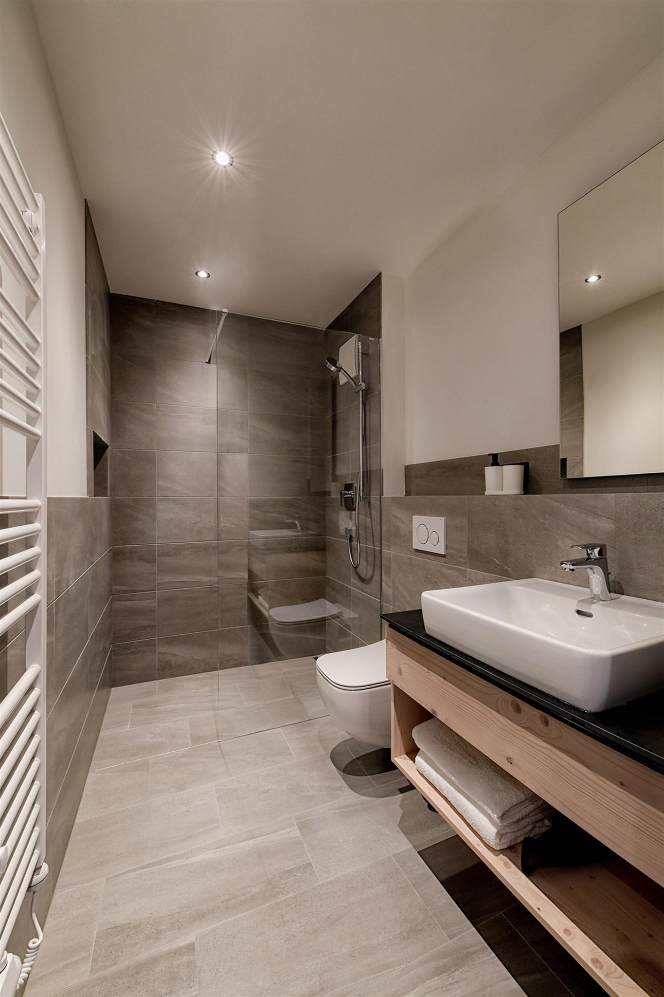 • Badezimmer mit Dusche und WC; beheizter Handtuchtrockner