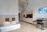 Besonderes Highlight sind unsere Loft-Apartments im 2. Stock mit Sichtdachstuhl und einer Raumhöhe von 4,2 Metern.