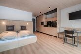 1 Zimmer Apartments für 2 Personen; eine 3. Person oder Kinder ab 14 Jahren finden auch noch auf der großen Schlafcouch Platz.