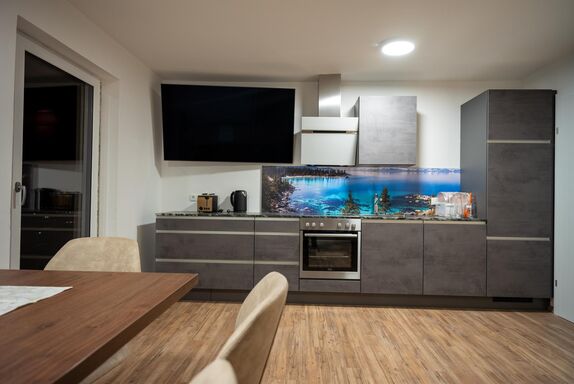 Die offene Küche bietet alles, was sie zum Verwöhnen Ihrer Liebsten benötigen: Ein Kochfeld mit 4 Kochstellen, eine Kühl-Gefrierkombination, eine Mikrowelle, ein Backofen, eine Spülmaschine, sowie Geschirr/Besteck und Kochutensilien mit einer Kaffeemaschine, einen Toaster und einem Wasserkocher. Zusätzlich haben wir für unsere Gäste eine allgemeine Waschmaschine, sowie ein Bügeleisen mit Bügelbrett bereitgestellt.