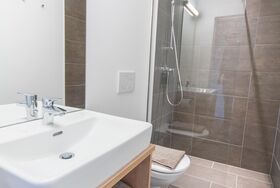 Dieses Dreibettzimmer verfügt über schallisolierte Wände, einen Kleiderschrank sowie ein eigenes Bad mit einer Dusche und einem Haartrockner. Das Dreibettzimmer bietet zudem einen Wasserkocher, Parkettböden, einen Fliesenboden, eine Heizung und einen Flachbild-TV. Die Wohneinheit ist mit 2 Betten ausgestattet.