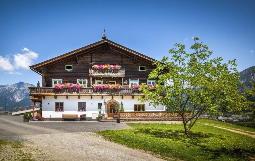 Er befindet sich auf einem der schönsten Plätze in Saalfelden: auf einem kleinen Plateau nur ein paar Gehminuten vom Stadtzentrum entfernt. Zu Füßen des Hofes liegen Wiesen und der Ritzensee. Der Ausblick auf die Gebirgszüge der Leoganger und Loferer Steinberge und das Steinerne Meer ist einfach atemberaubend!