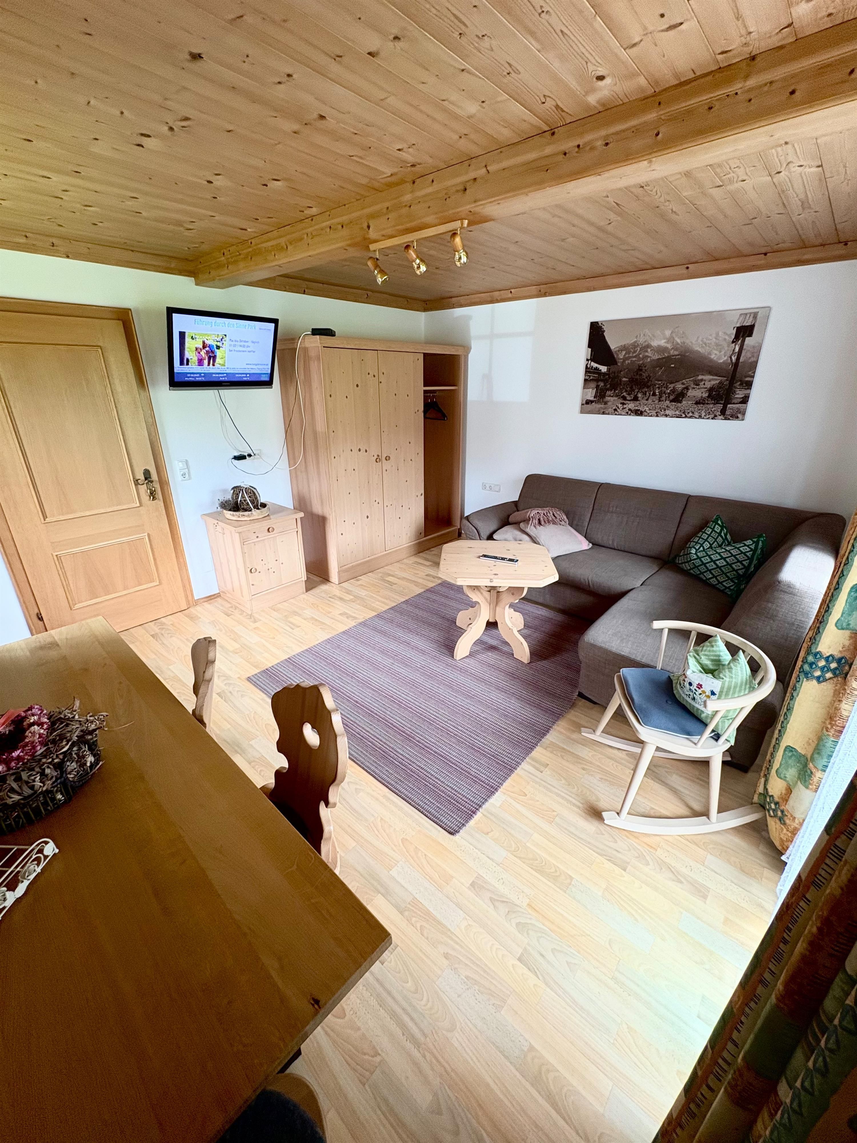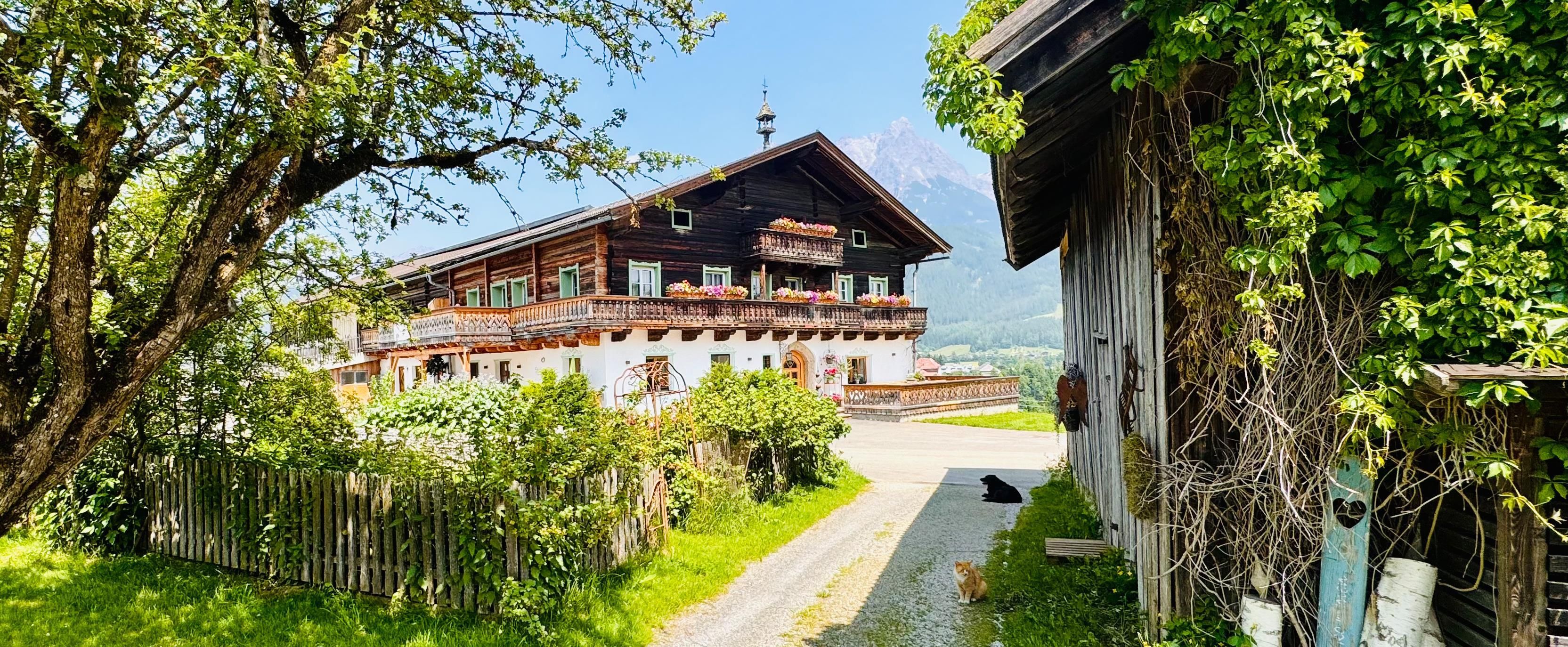 Er befindet sich auf einem der schönsten Plätze in Saalfelden: auf einem kleinen Plateau nur ein paar Gehminuten vom Stadtzentrum entfernt. Zu Füßen des Hofes liegen Wiesen und der Ritzensee. Der Ausblick auf die Gebirgszüge der Leoganger und Loferer Steinberge und das Steinerne Meer ist einfach atemberaubend!
