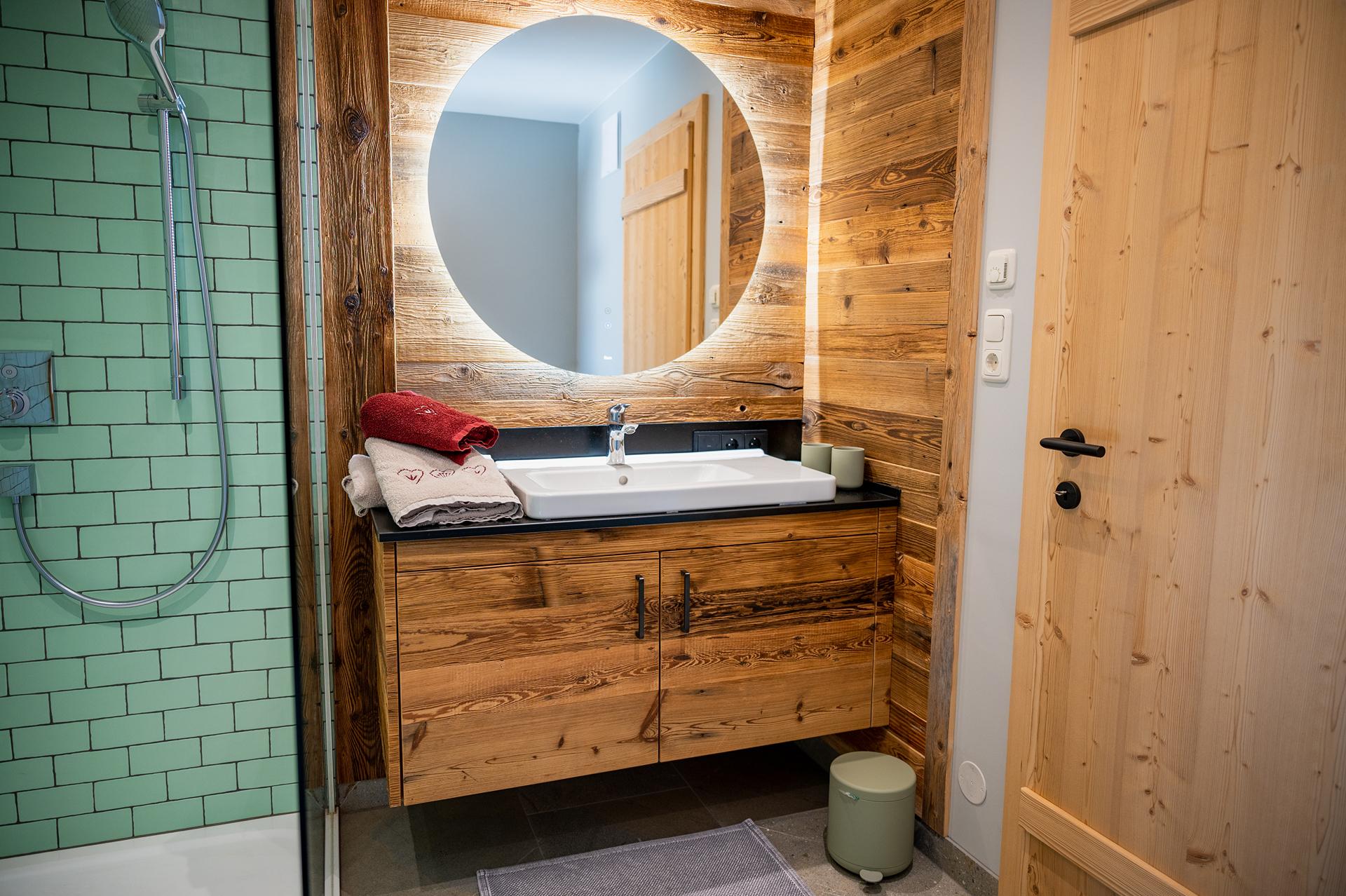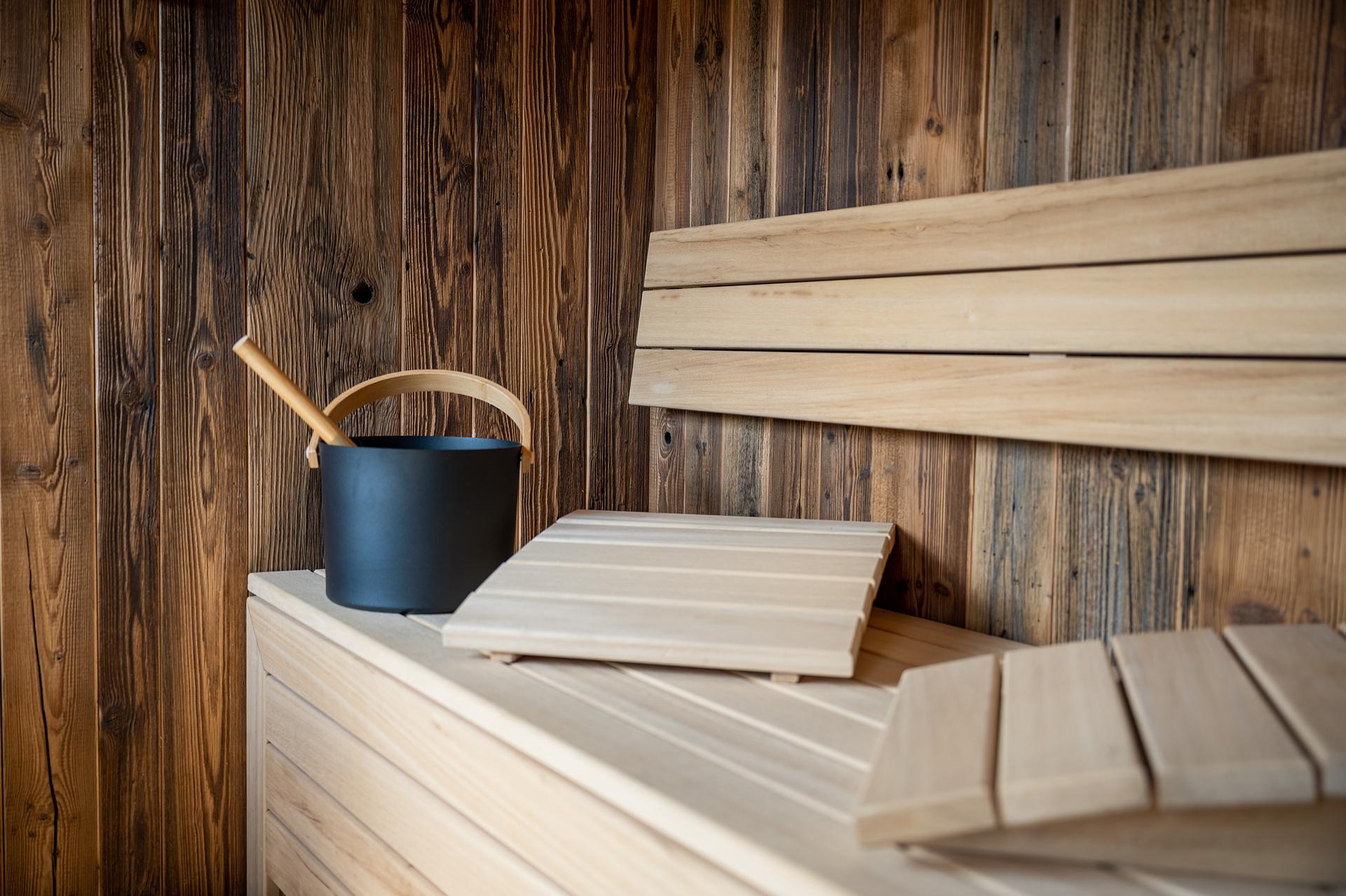 • Badezimmer mit Sauna (inkl. Aufgussöle) mit Blick auf den Ritzensee