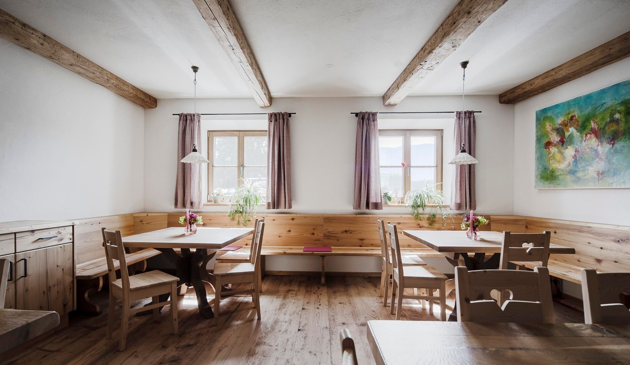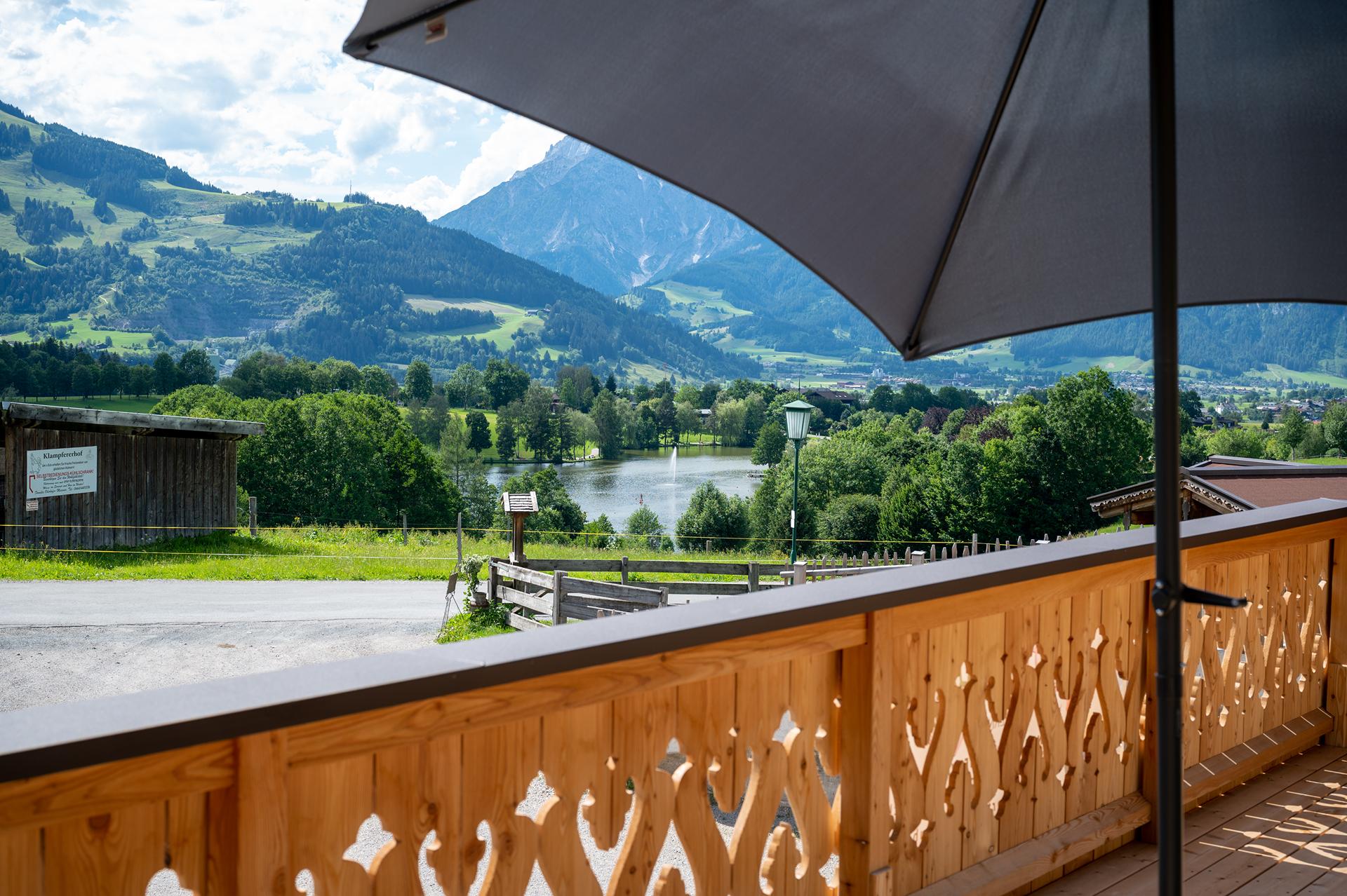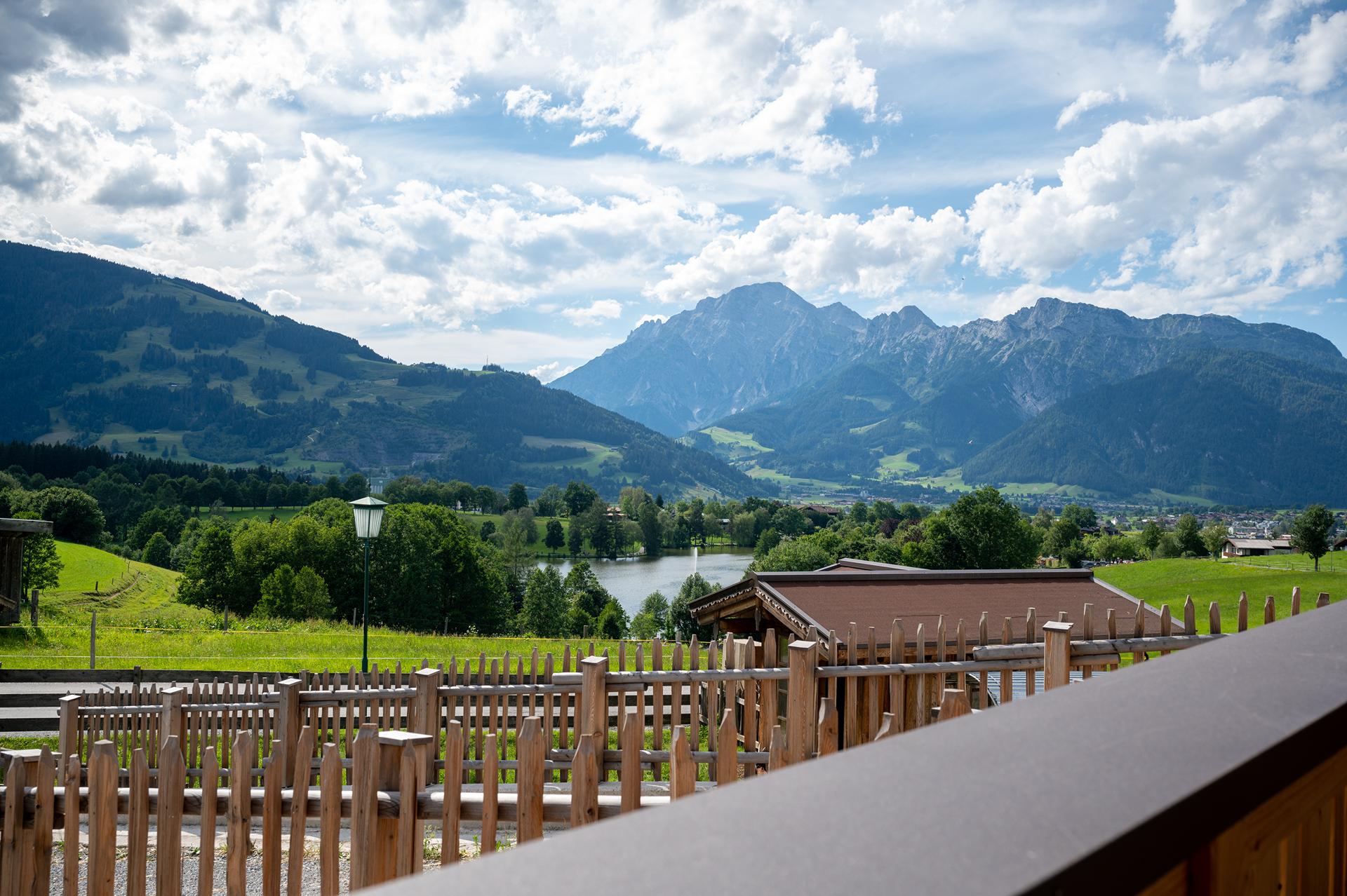 Er befindet sich auf einem der schönsten Plätze in Saalfelden: auf einem kleinen Plateau nur ein paar Gehminuten vom Stadtzentrum entfernt. Zu Füßen des Hofes liegen Wiesen und der Ritzensee. Der Ausblick auf die Gebirgszüge der Leoganger und Loferer Steinberge und das Steinerne Meer ist einfach atemberaubend!