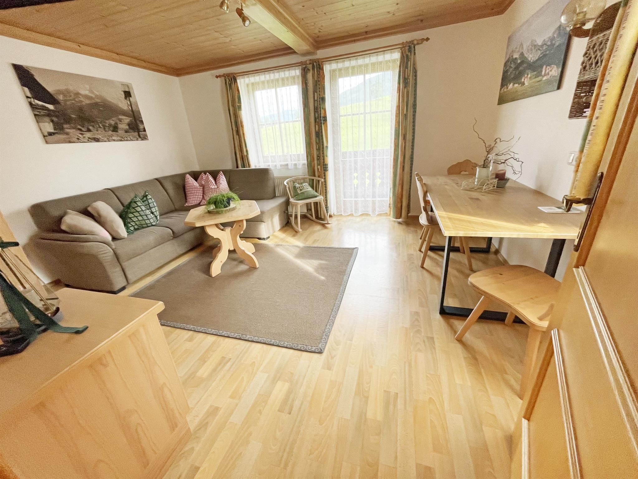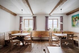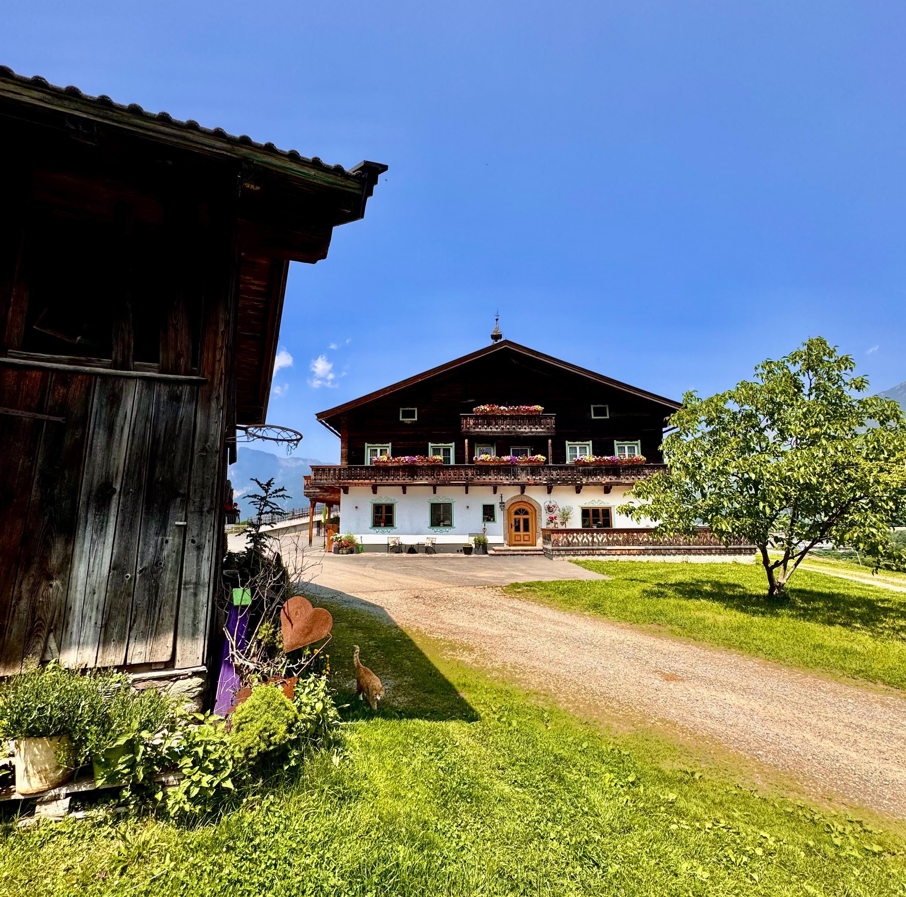 Er befindet sich auf einem der schönsten Plätze in Saalfelden: auf einem kleinen Plateau nur ein paar Gehminuten vom Stadtzentrum entfernt. Zu Füßen des Hofes liegen Wiesen und der Ritzensee. Der Ausblick auf die Gebirgszüge der Leoganger und Loferer Steinberge und das Steinerne Meer ist einfach atemberaubend!