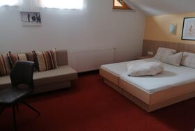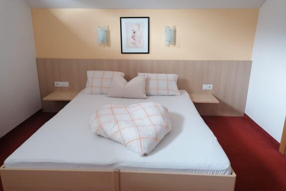 Gemütliches Apartement (ca. 38m²) für 2-3 Personen im 2. Stock ohne Balkon ist ausgestattet mit 1Schlafzimmer mit Zusatzbett und ausziehbarer Couch, DU/ WC , Kabel-TV. Eine Wohnküche mit Geschirrspüler, Kühlschrank und Mikrowelle.