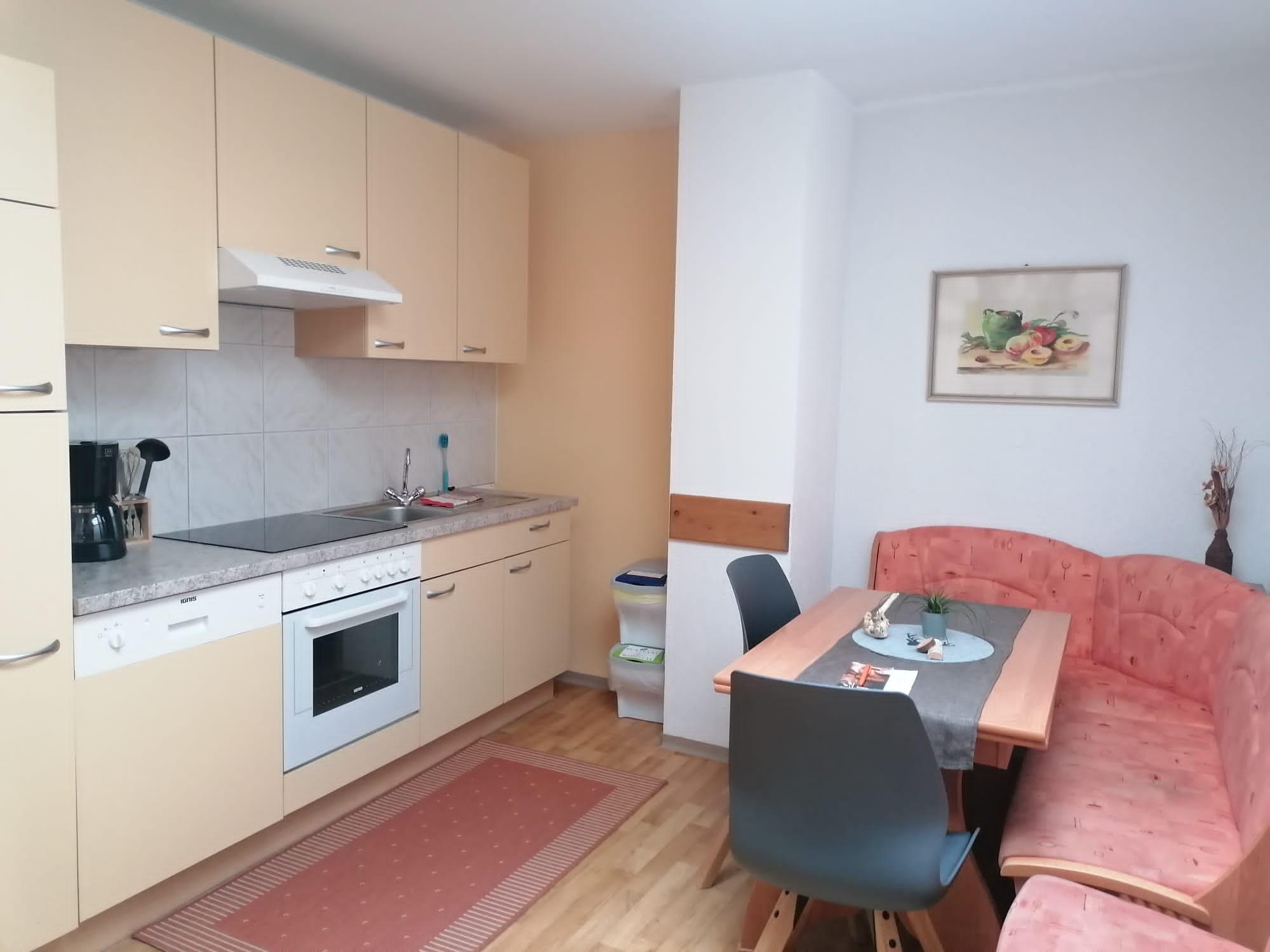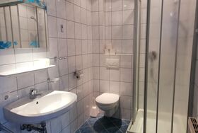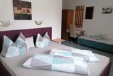 Gemütliches Appartement (ca. 60 m²) für 2- 5 Personen, im 2. Stock, mit teilweise Balkon zur Südseite, ist ausgestattet mit 2 getrennten Schlafzimmern jeweils mit DU/ WC und einem Zusatzbett. Eine Wohnküche mit Eckbank , Kaffemaschine, Geschirrspüler, Kühlschrank mit Gefrierfach, Backofen, und Kabel-TV. Bei einer Belegung mit nur 2 Personen steht nur 1 Schlafzimmer zur Verfügung.