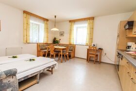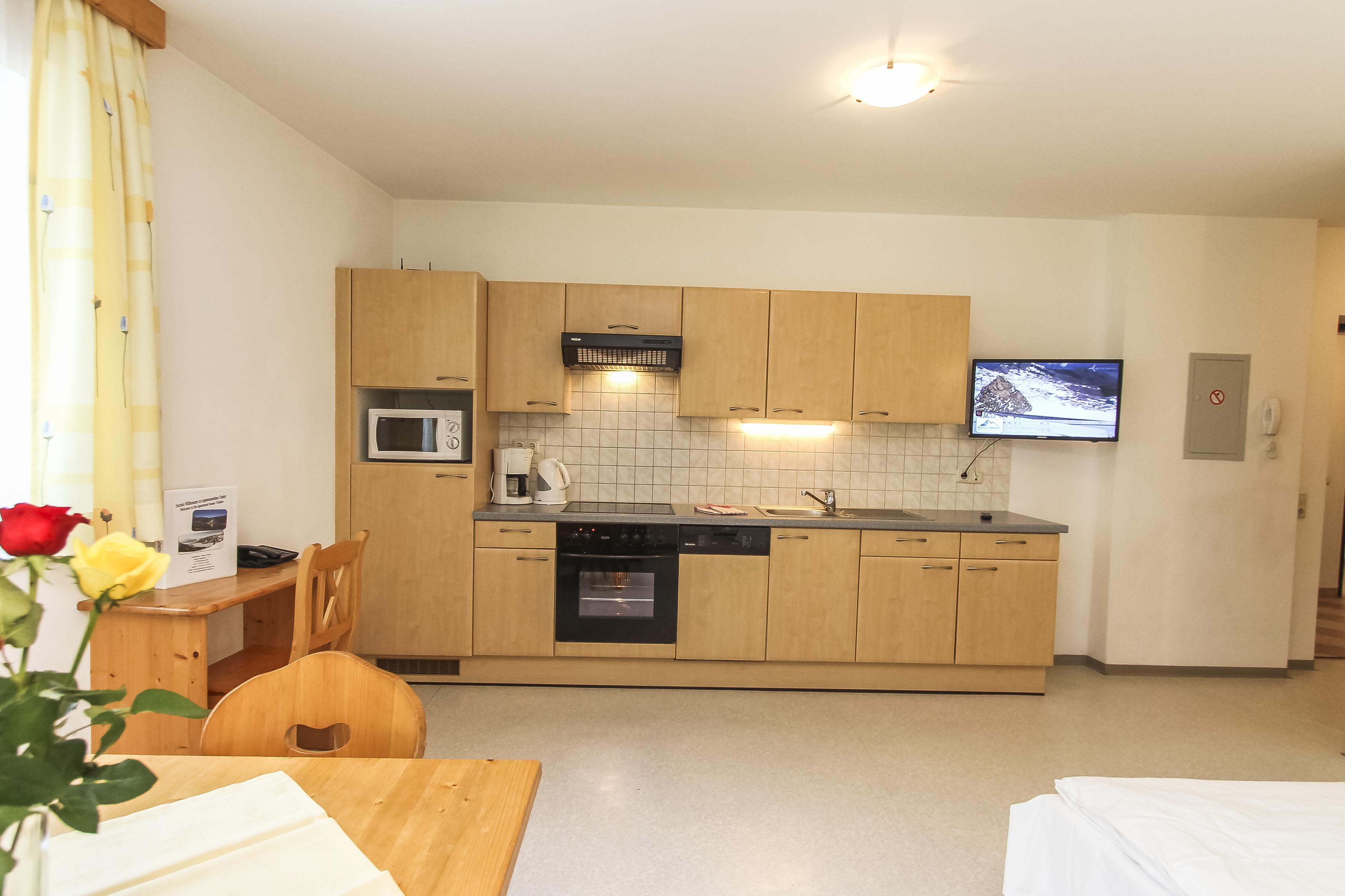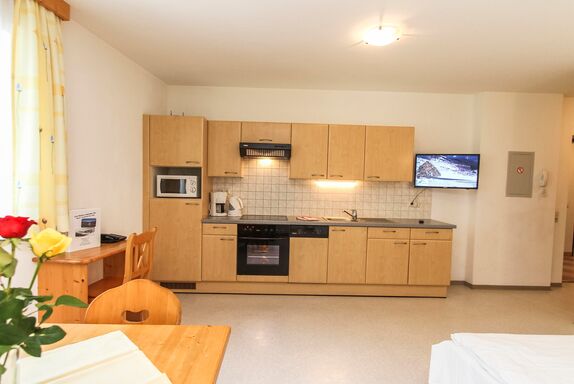 Ausstattung des Appartements: 1 Schlafzimmer mit einem Doppelbett 1xDusche und WC getrennt (inkl. Haarfön) 2 Kabel Flat-TV Telefon Safe Balkon kostenfreies W-lan Bettwäsche, Hand-und Duschtücher Komplett eingerichtete Wohnküche mit: ausziehbare Doppelcouch Essecke Mikrowelle Geschirrspüler Kaffeemaschine Wasserkocher Kühlschrank mit Gefrierfach 4 Platten Ceran-Kochfeld mit Backrohr Koch-und Essgeschirr sowie Besteck und Küchenutensilien