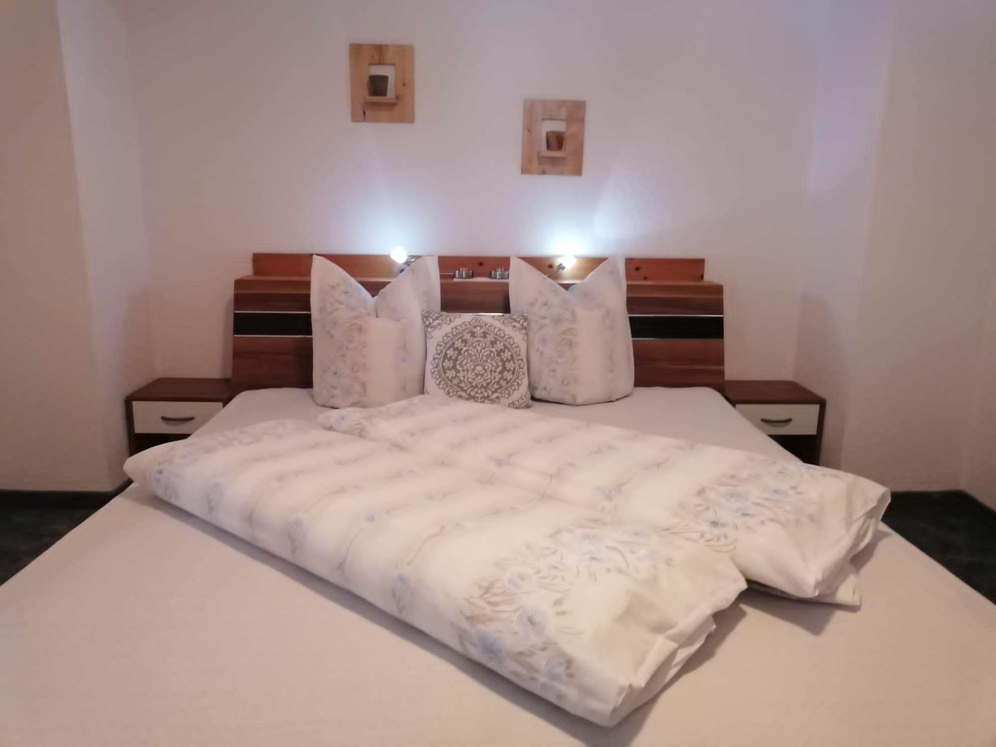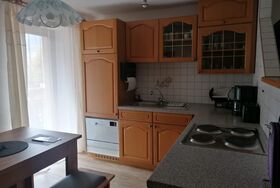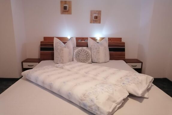 Gemütliches Appartement ( ca.65m² ) für 2- 5 Personen, mit Balkon zur Südseite, ist ausgestattet mit 2 seperaten Doppelzimmern jeweils mit Dusche und WC. Wohnzimmer mit ausziehbarer Couch für die 5. Person. Küche mit Eckbank, Tisch, Backofen, Herd, Kühlschrank mit Gefrierfach und Geschirrspüler. Kabel TV. Bei einer Belegung mit nur 2 Personen steht nur 1 Schlafzimmer zur Verfügung.