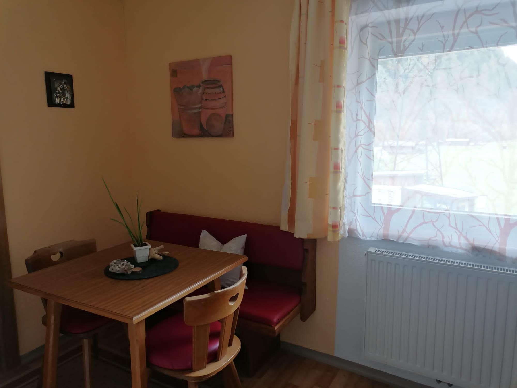 Gemütliches Appartement ( ca. 38m²) für 2-3 Personen im 2. Stock, teilweise Balkon zur Südseite, ist ausgestattet mit 1 Schlafzimmer mit Zusatzbett, Badezimmer mit Dusche/WC und Kabel/TV. Wohnküche mit Eckbank, Kaffemaschine, Toaster, kl. Backofen und Geschirrspüler.