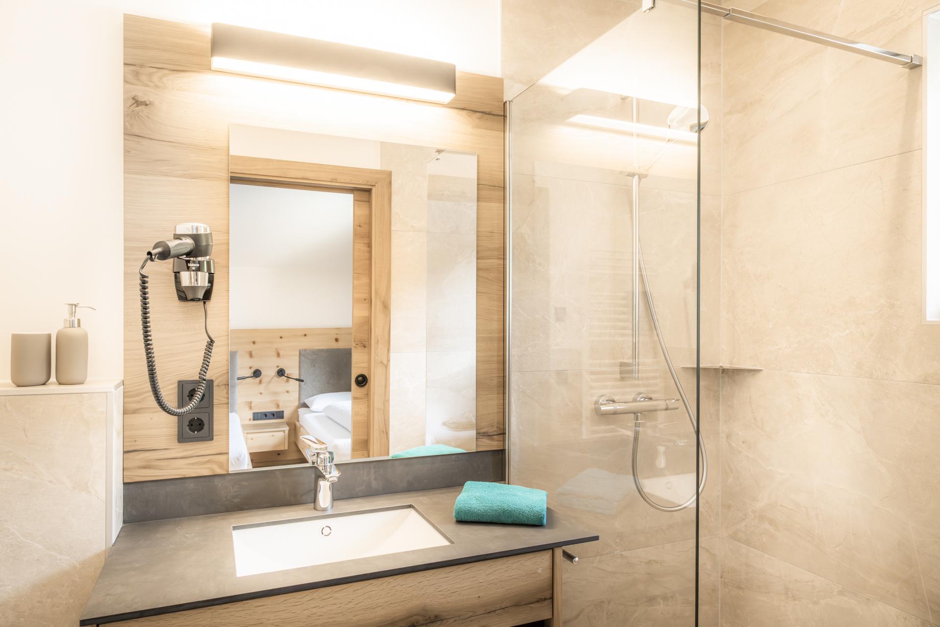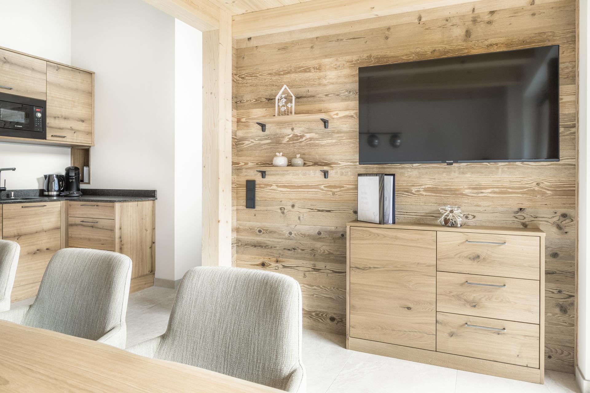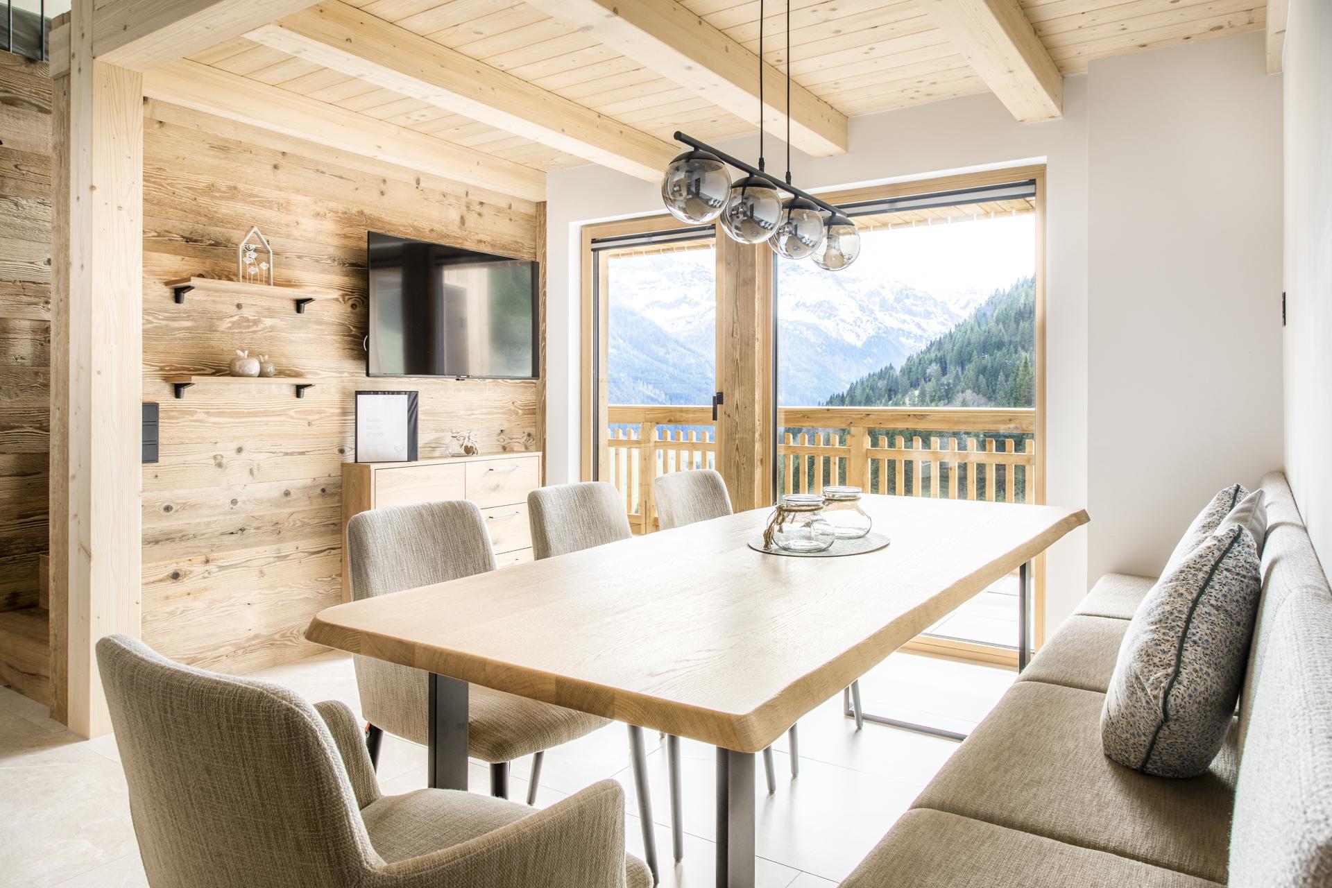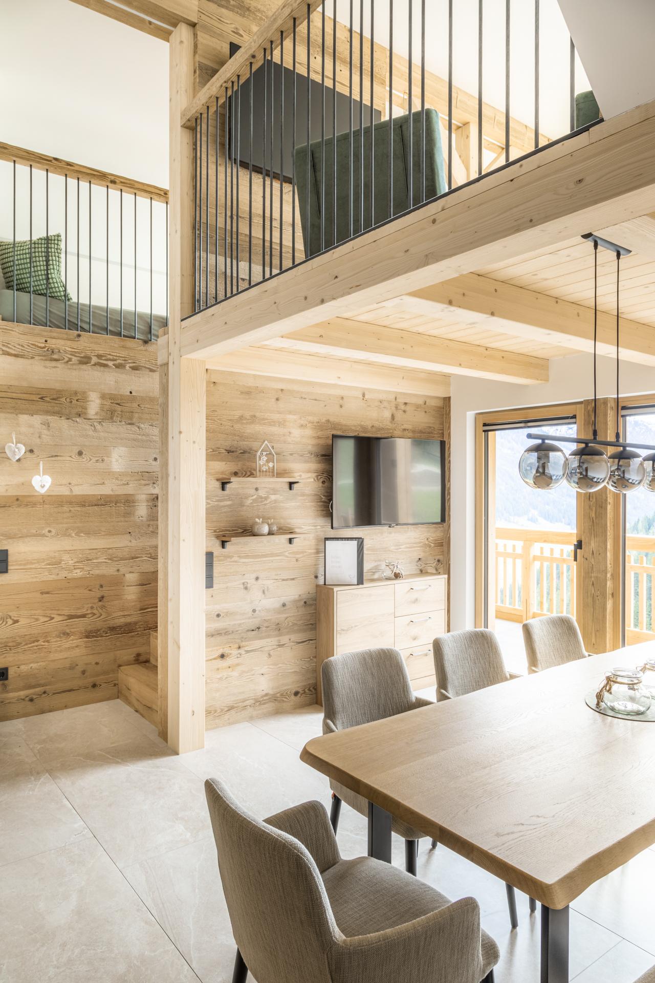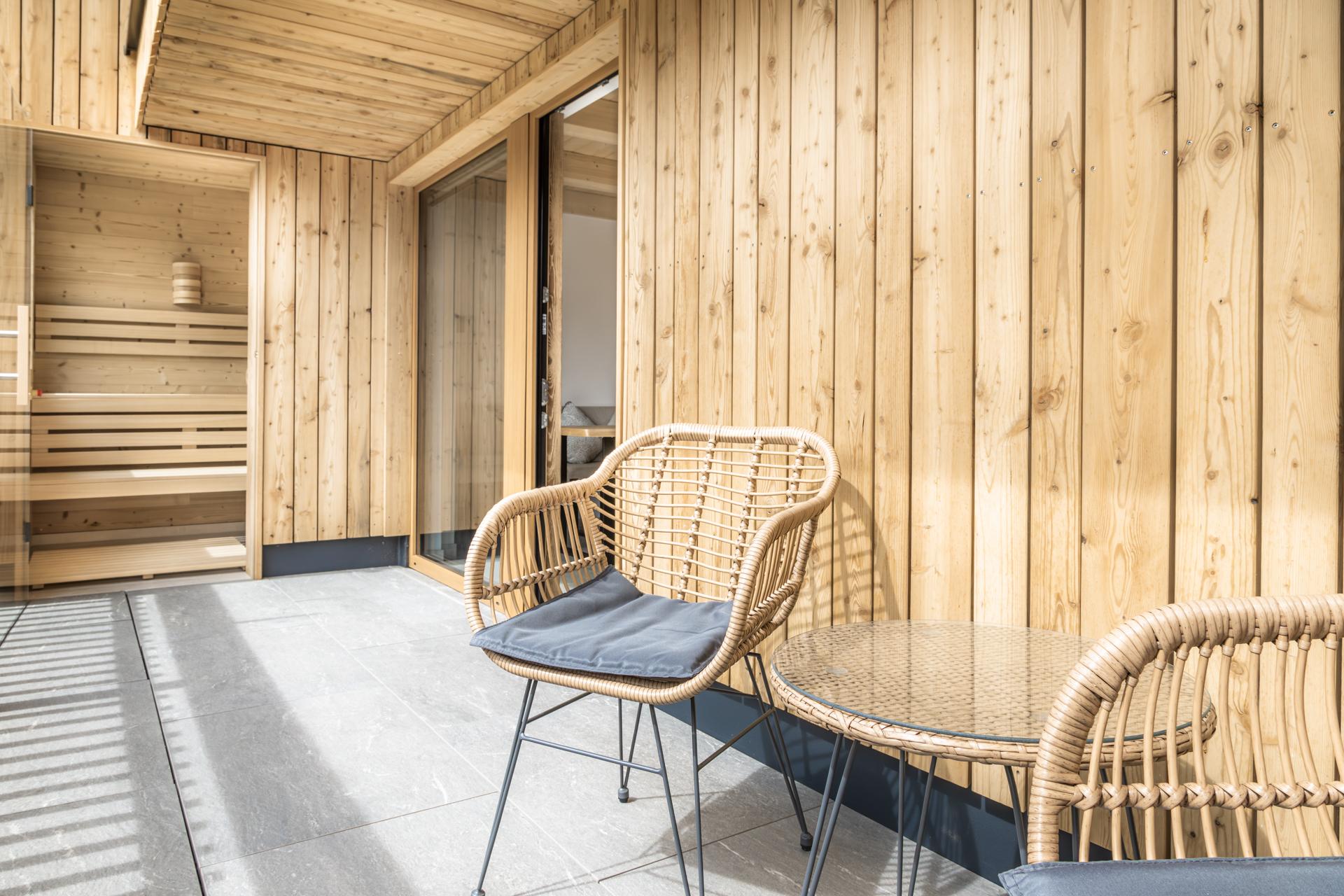 Die zwei neu erbauten Ferienwohnungen im 2. Stock bieten Freiraum, Tischlermöbel und sind nach der Morgensonne ausgerichtet. Zusätzlich verfügen sie über zwei eigene Saunen mit Panoramafenster im Außenbereich. Wellnessurlaub inklusive