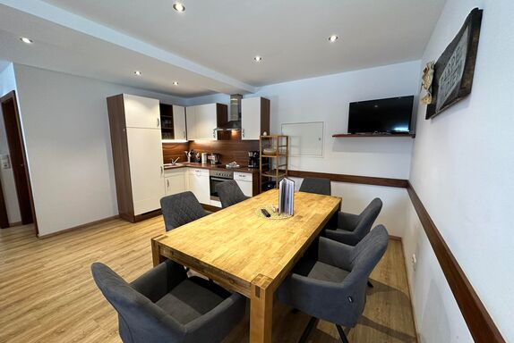 Unser Apartment 2 bietet Platz für bis zu 6 Personen. Sie liegt ebenerdig im Zentrum von Hollersbach. Es umfasst einen Wohnraum mit Schlafsofa, Küche und Essbereich sowie ein Badezimmer mit Dusche mit seperatem WC.