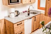 • Komplett ausgestattete Küche (Geschirr, Gläser, Besteck, Töpfe, Pfannen etc.)