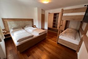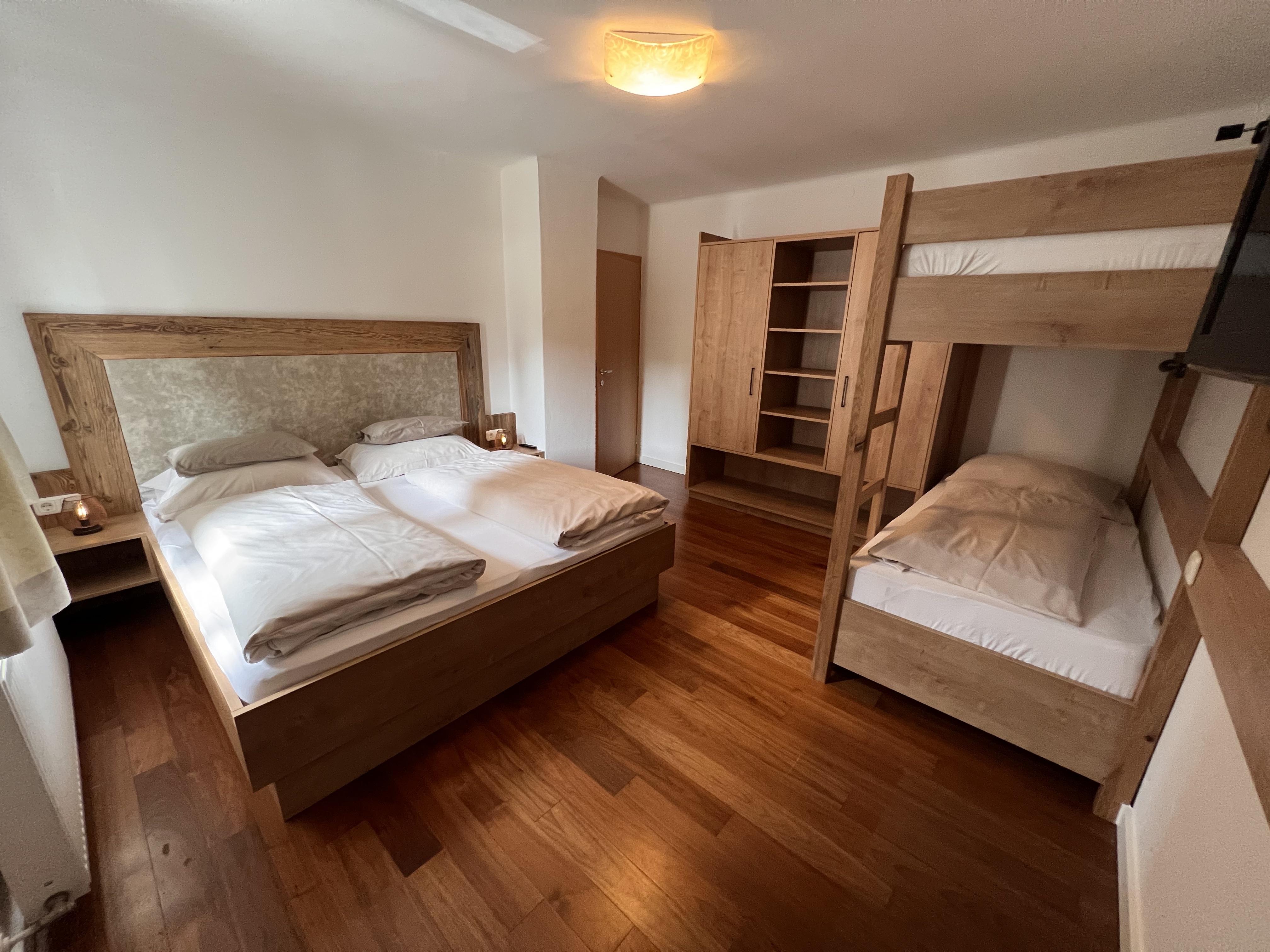 • 1 Schlafzimmer mit Doppelbett 180 x 200 cm und 1 Stockbett 90 x 200 cm