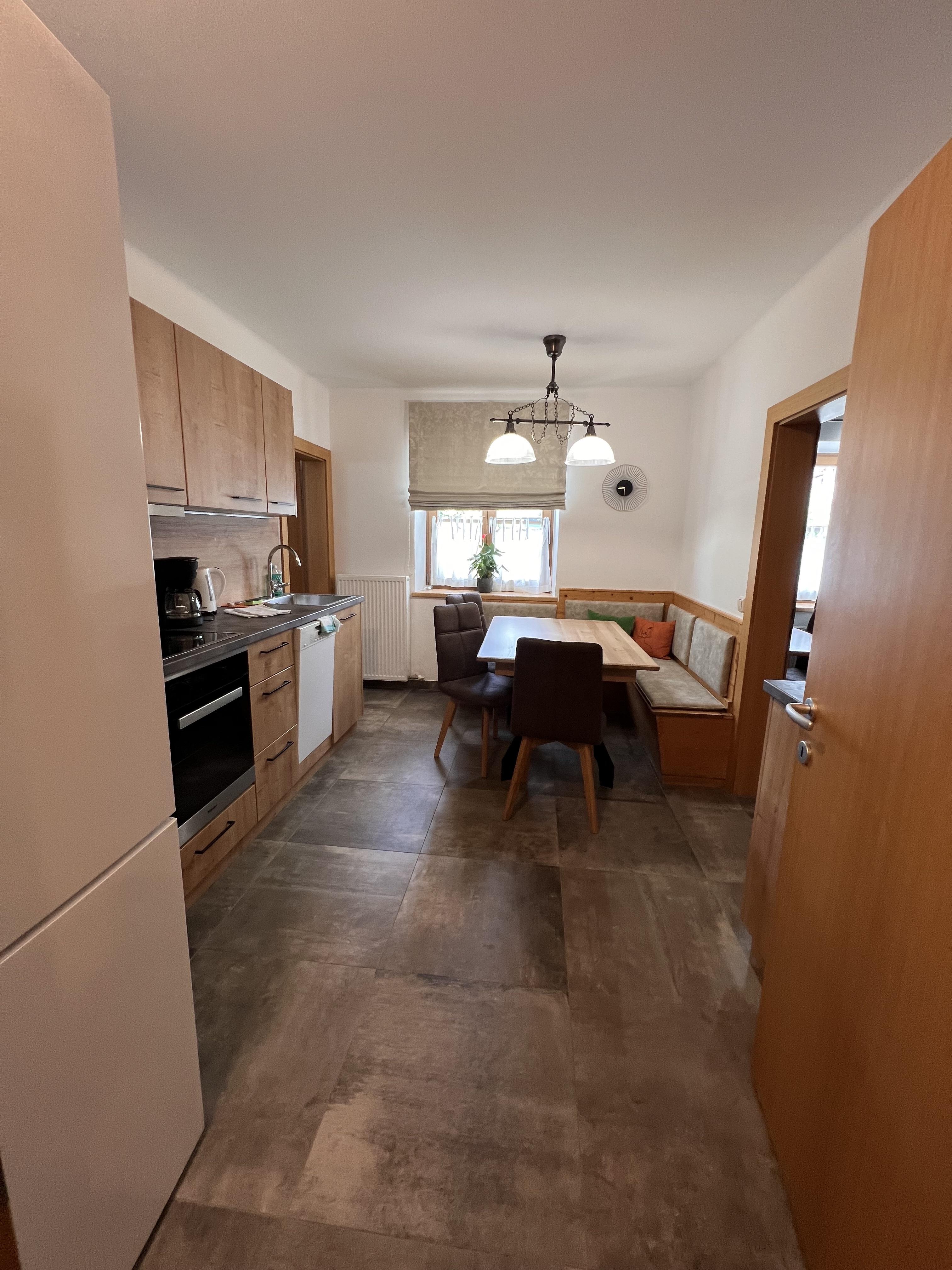 • komplett ausgestattete Küche mit Essecke (Geschirr, Gläser, Besteck, Töpfe, Pfannen etc.)