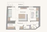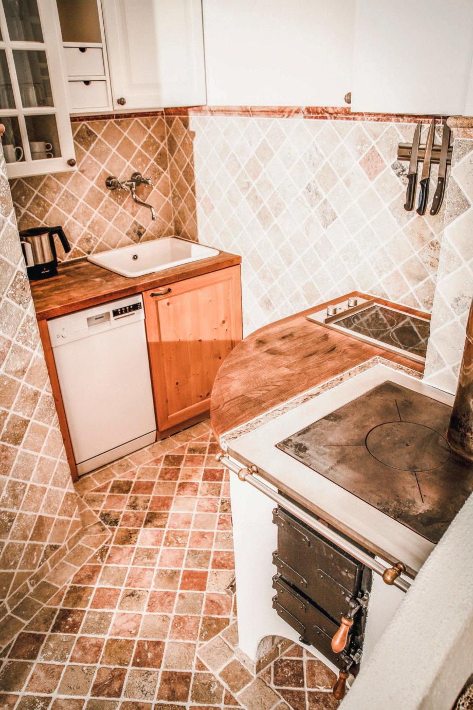 • Komplett ausgestattete Küche (Geschirr, Gläser, Besteck, Töpfe, Pfannen etc.)