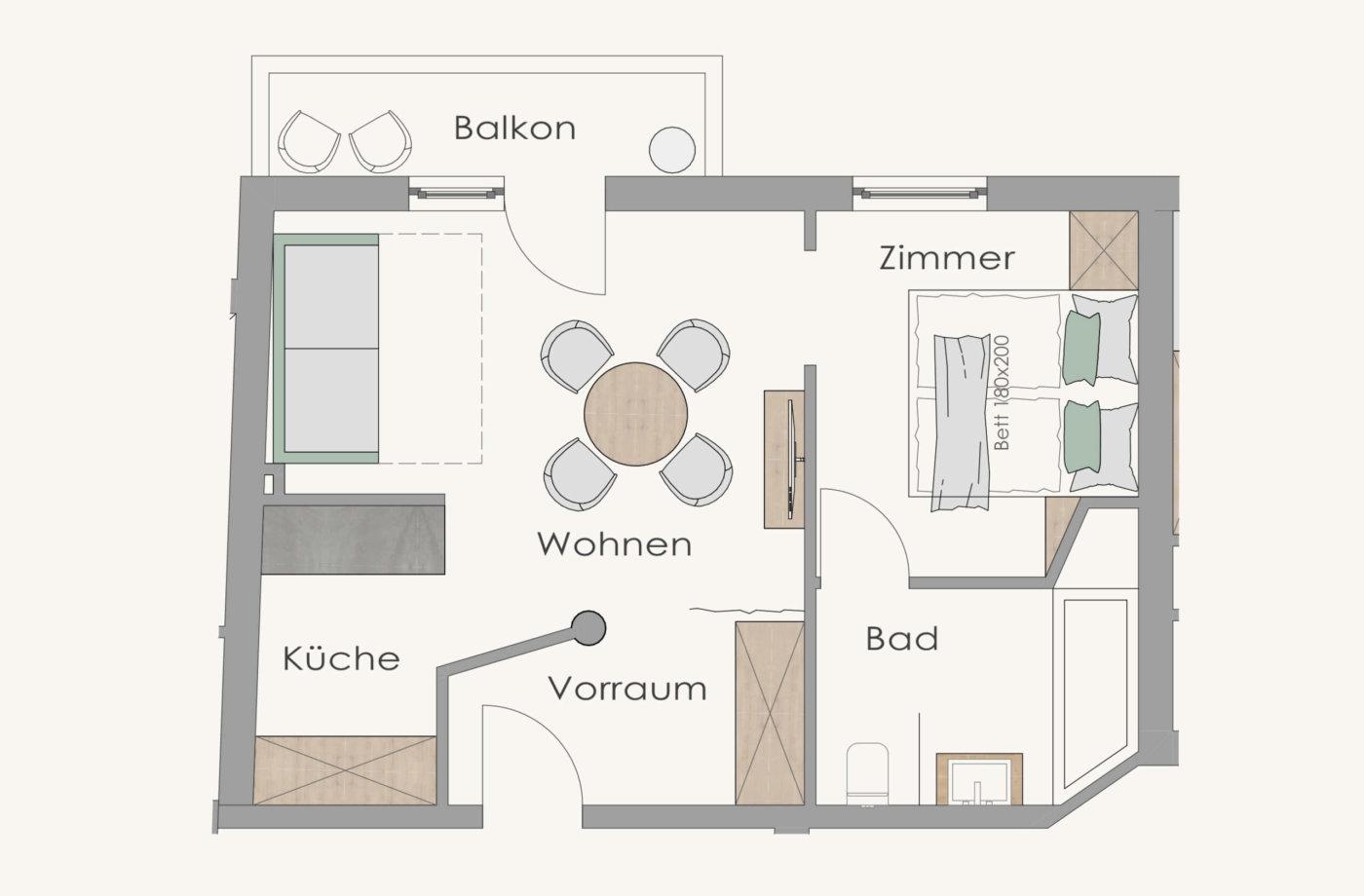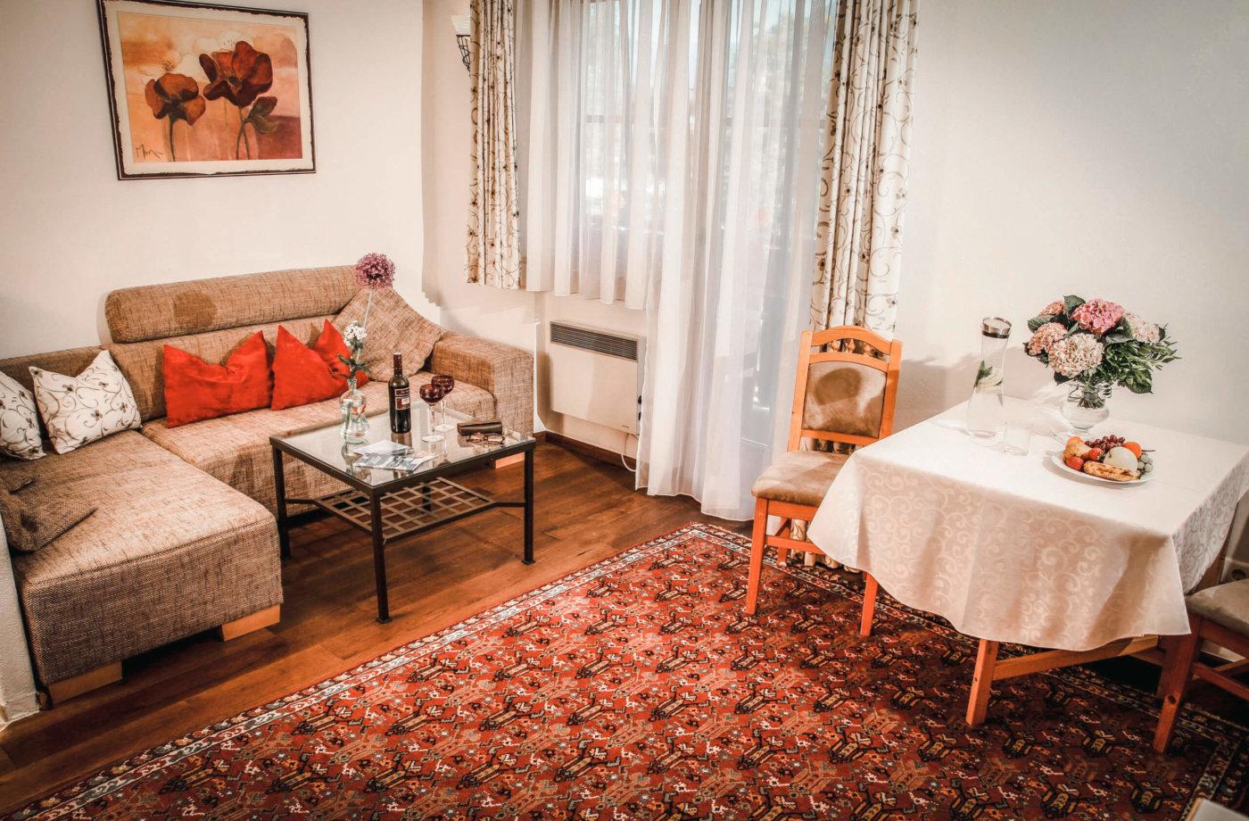 • Wohn- und Essraum mit Flat-TV und hochwertigem Schlafsofa 160 x 200 cm für 1-2 Personen