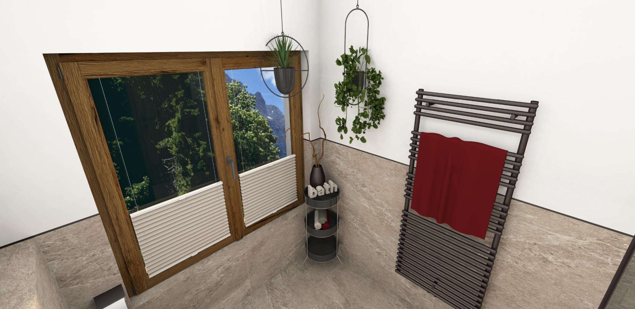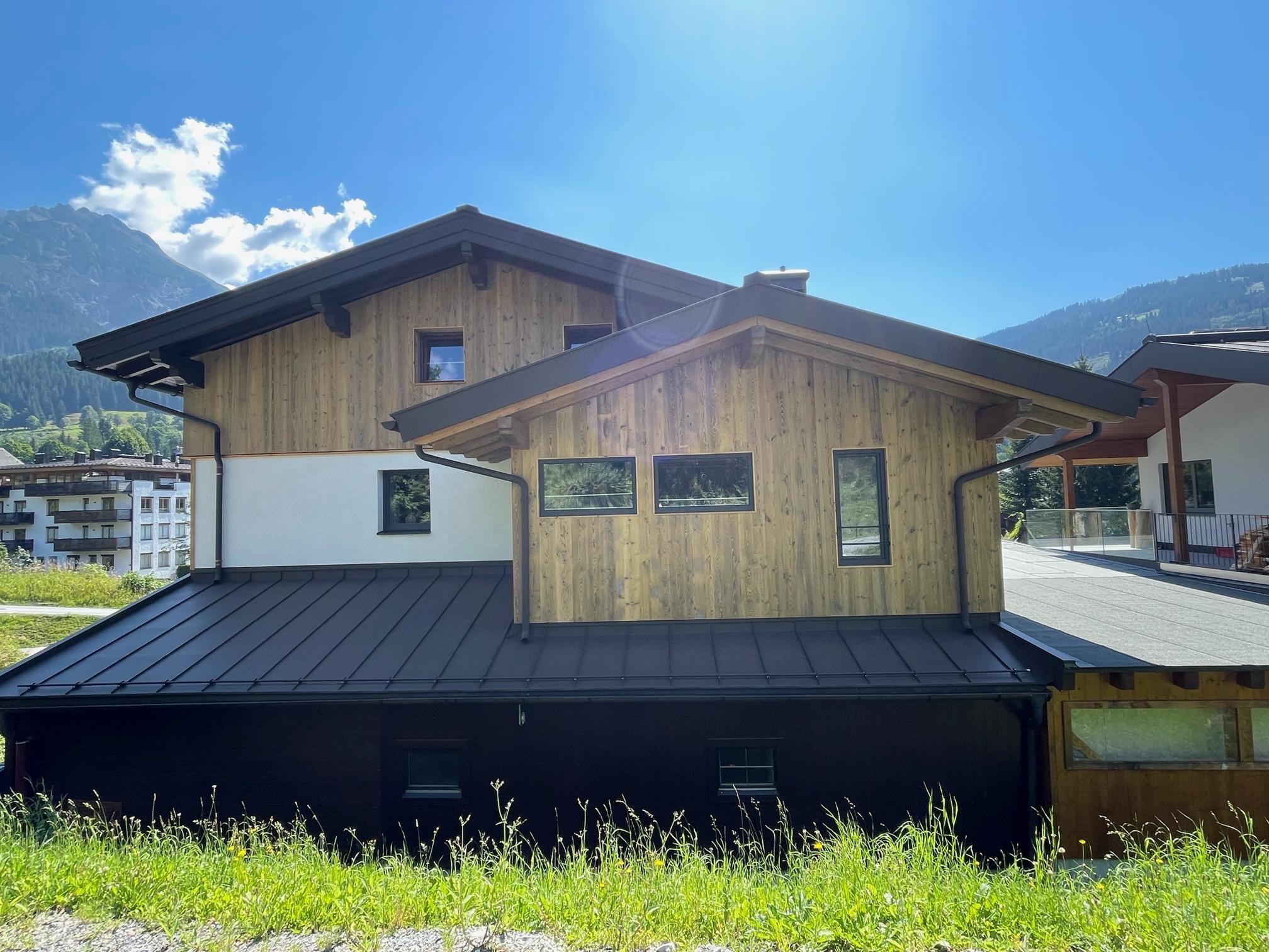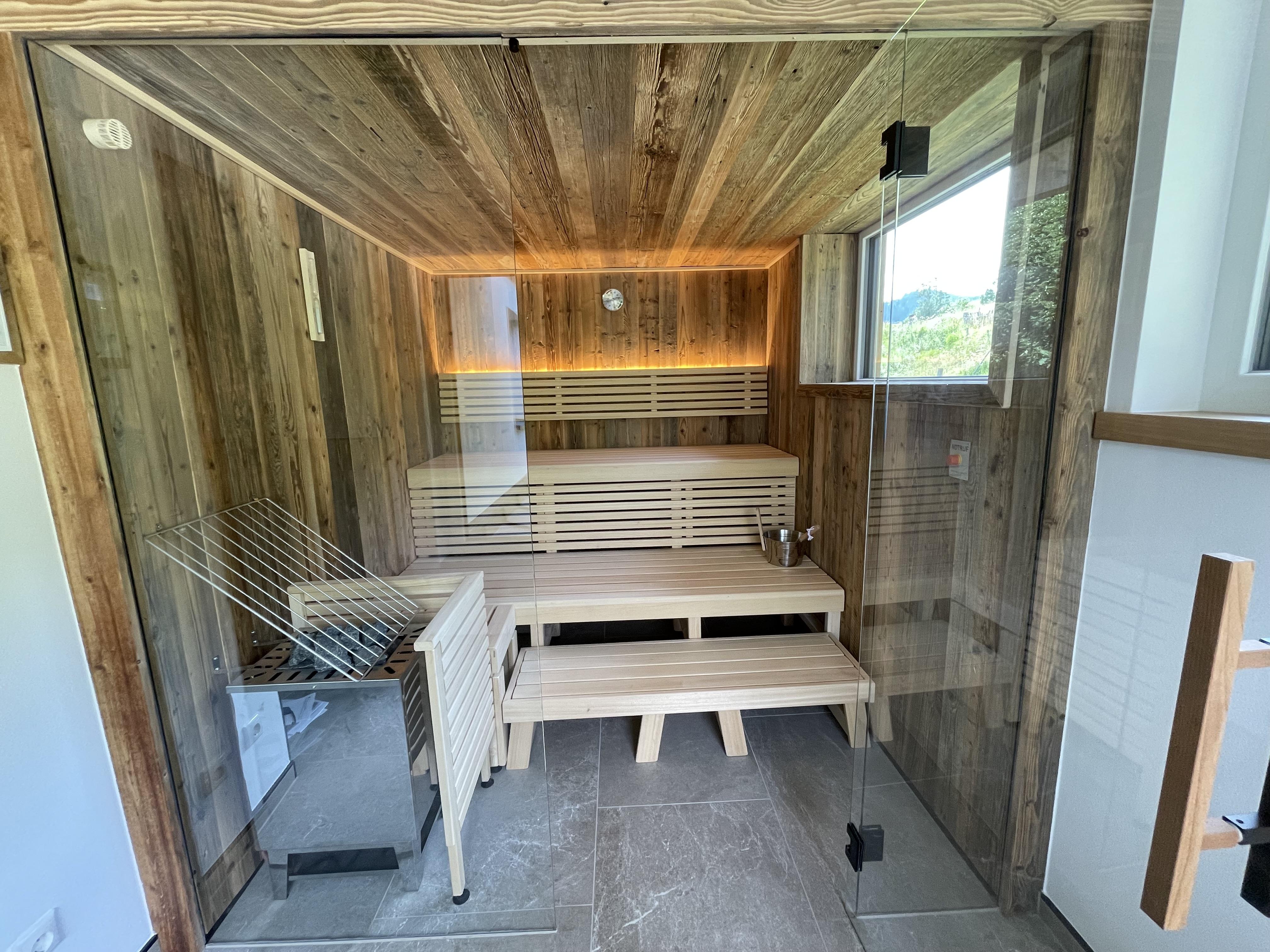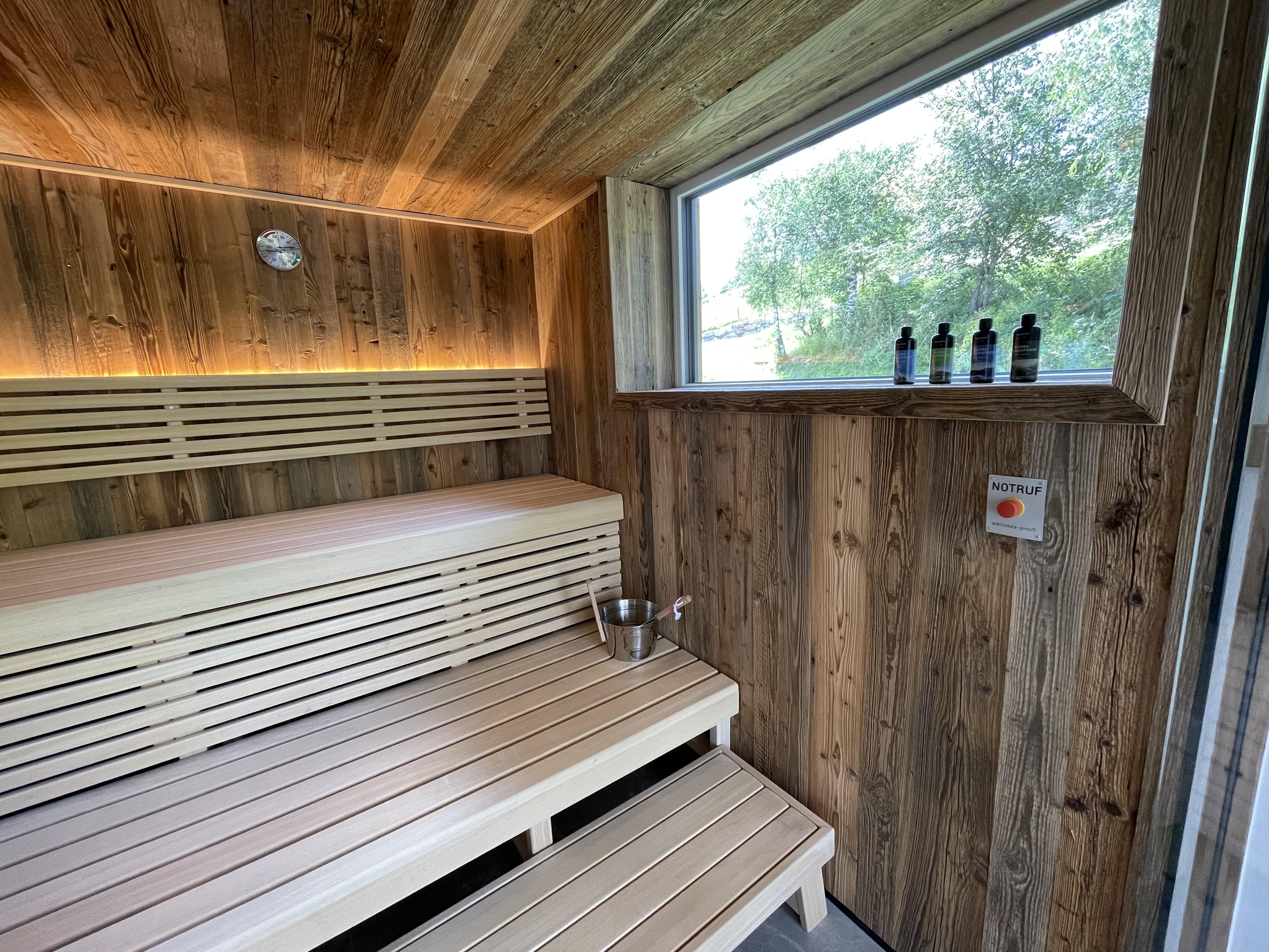 Das 1. Schlafzimmer bietet ein Bad-en Suite mit sichtbaren Dachstuhl. Das 2. Schlafzimmer hat ein extra Bad, von dem man in die Sauna gelangt mit Blick auf die Hinterthaler Berge.