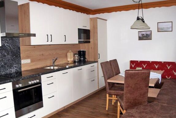 Wohnküche (Geschirrspüler, Kabel-TV, Balkon), Doppel- und Dreibettzimmer, Fußbodenheizung, Duschraum, WC, direkt an der Skischaukel, ruhige Lage. Skischulnähe.