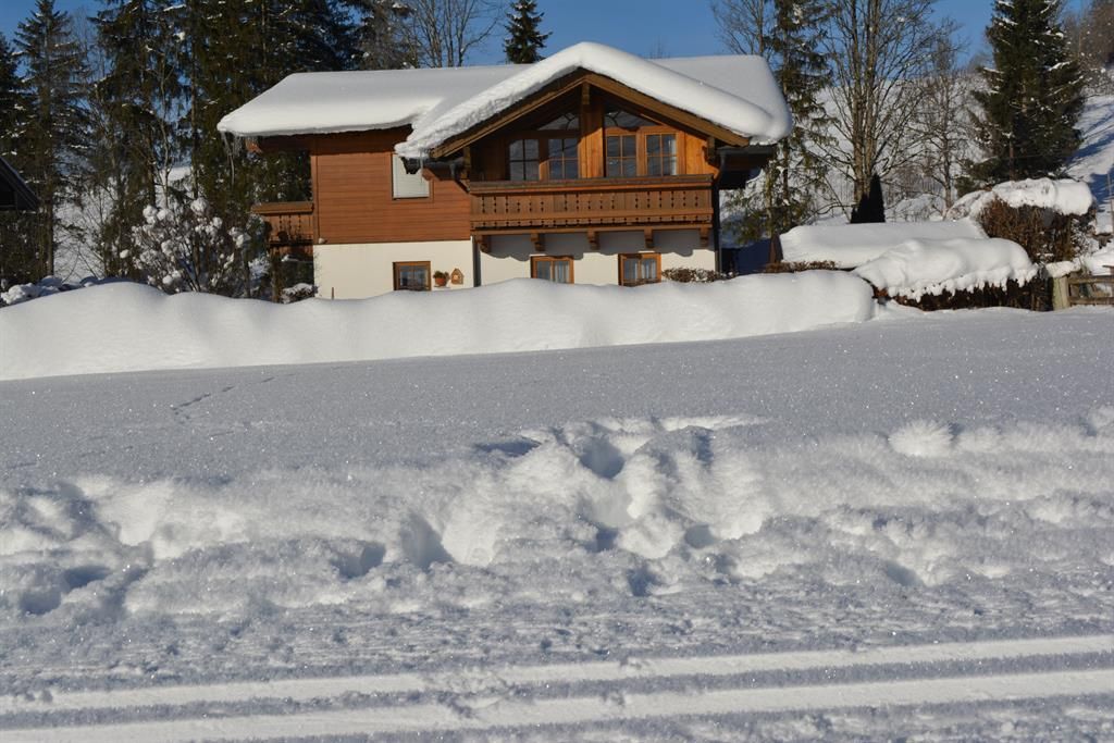 Der Einstieg zur Langlaufloipe ist direkt vor unserem Haus.