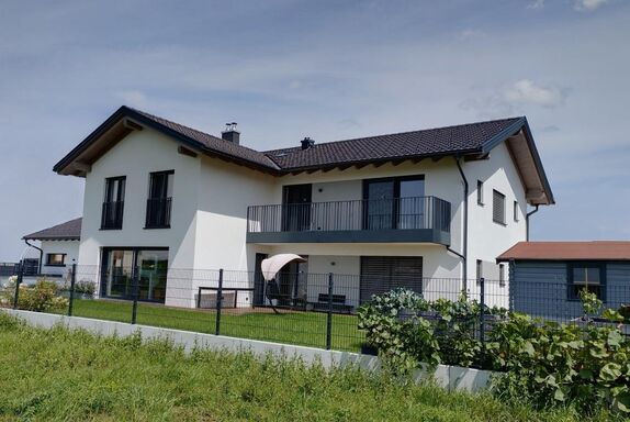 Zentral gelegen bieten wir unseren Gästen in unserem neuen Haus eine modern eingerichtete Nichtraucher-Ferienwohnung mit Stil im 1. OG gelegen und bequem mit dem Lift erreichbar. Ihnen steht ein gemütliches Doppelzimmer, ein geräumiges Badezimmer mit begehbarer Dusche und WC sowie ein komfortabler Wohn- und Essbereich inklusive vollausgestatteter Küche zur Verfügung. Parkplatz und Wifi stehen unseren Gästen selbstverständlich kostenlos zur Verfügung. Genießen Sie einen herrlichen Ausblick ins Grüne und in die umliegende Bergwelt.