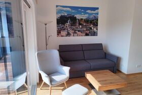 Herzlich willkommen im Haus Hopf in Eugendorf! Zentral gelegen bieten wir unseren Gästen in unserem neuen Haus eine modern eingerichtete Nichtraucher - Ferienwohnung mit Stil im 1. OG gelegen und bequem mit dem Lift erreichbar. Ihnen steht ein gemütliches Doppelzimmer, ein geräumiges Badezimmer mit begehbarer Dusche und WC sowie ein komfortabler Wohn- und Essbereich inklusive vollausgestatteter Küche mit Waschmaschine und Trockner zur Verfügung. Parkplatz und Wifi stehen unseren Gästen selbstverständlich kostenlos zur Verfügung. Genießen Sie einen herrlichen Ausblick ins Grüne und in die umliegende Bergwelt.