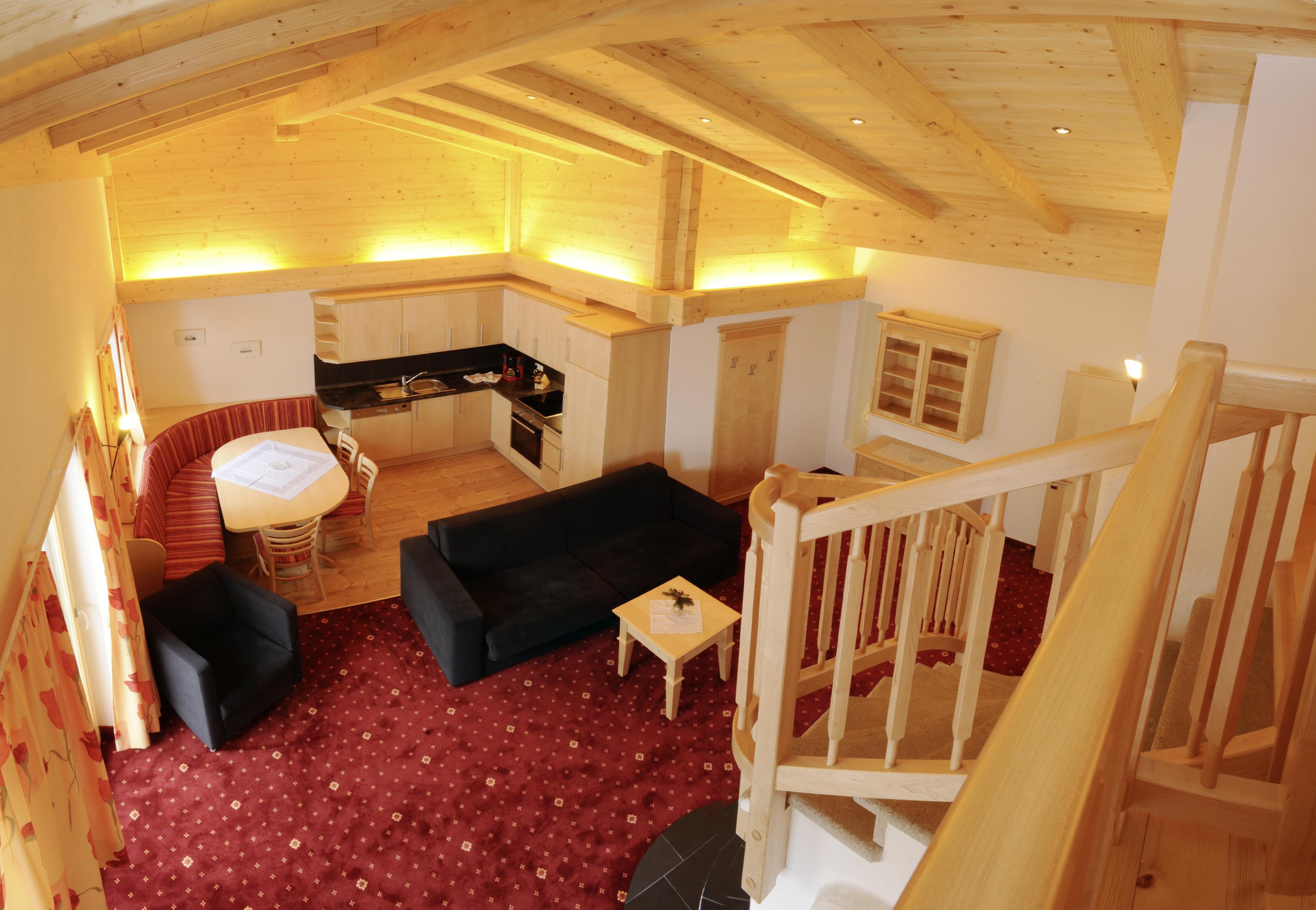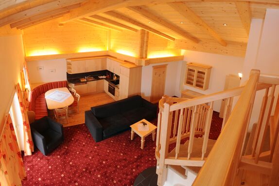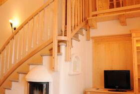 Familienwohnung m. Galerie und Kinderhütte für 6-8 Pers. Im UG finden Sie 2 DZ mit Dusche/WC. Im OG ein weiteres DZ mit großem Bad/WC u. Massagedusche. Highlight: Galerie mit einer Kinderhütte weiters eine großzügige Wohnküche, ein großer Wohnteil mit Ausziehsofa, offenem Kamin u. 2 Balkone
