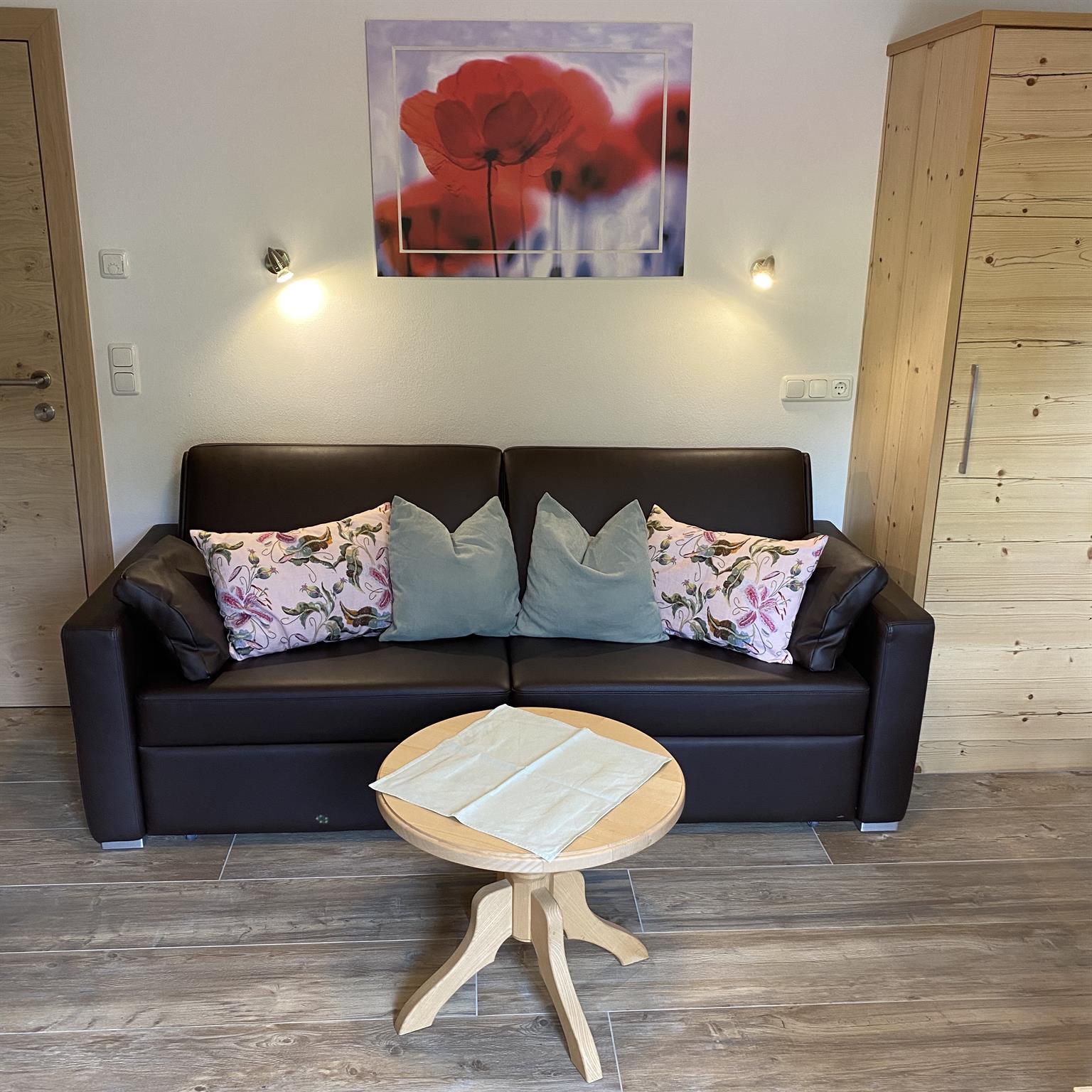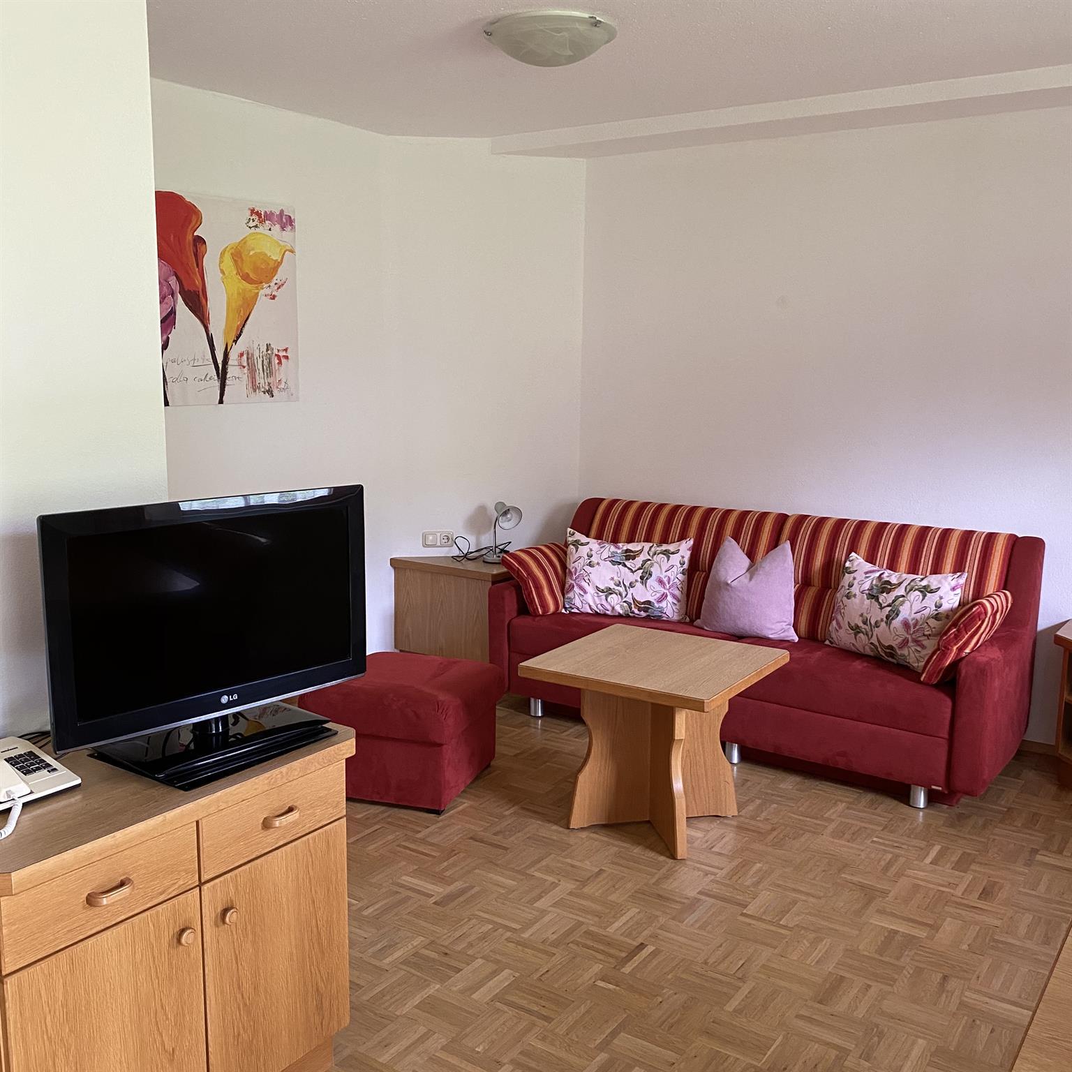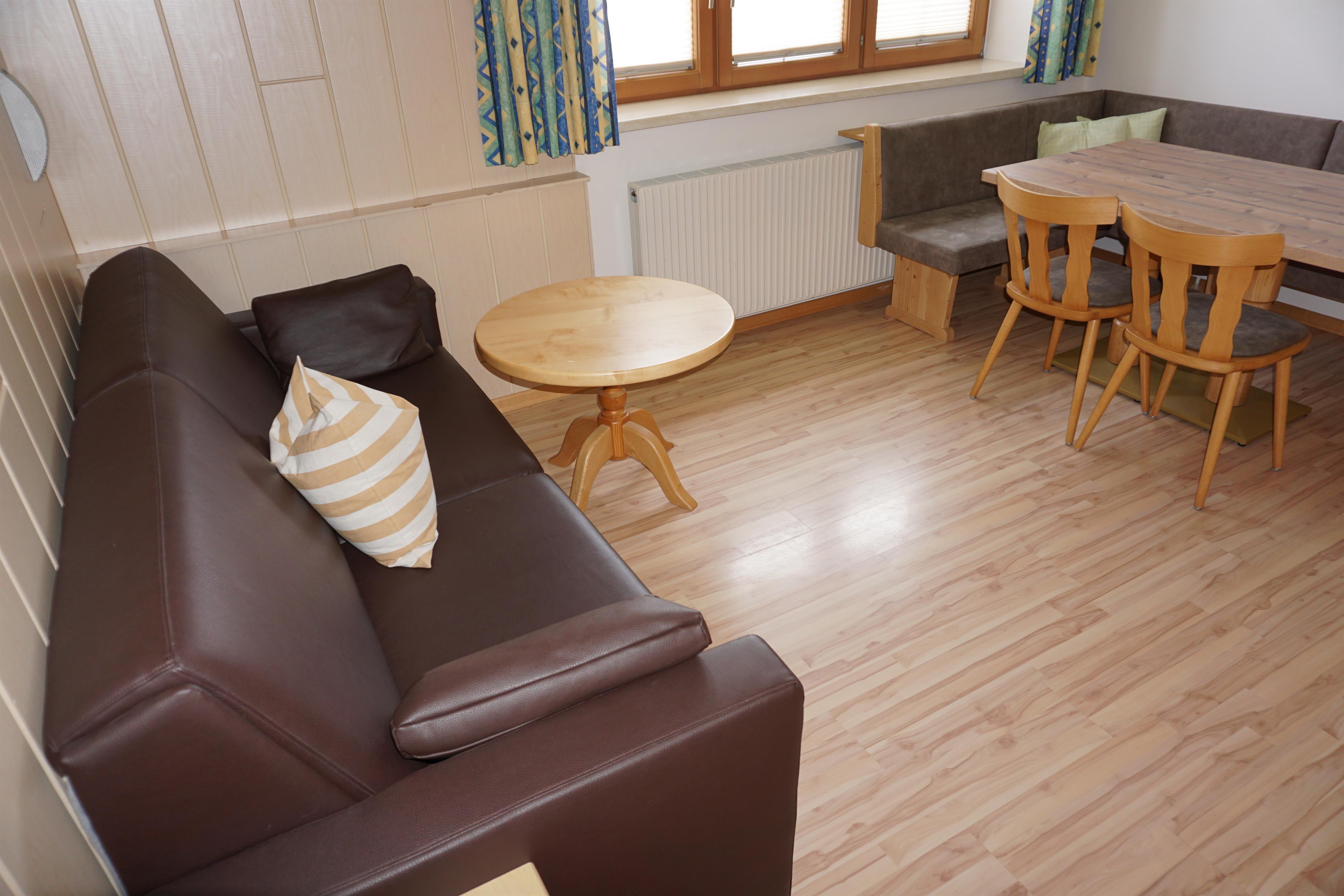 Das Appartement bietet ein Schlafzimmer mit Doppelbett und einer weiteren Schlafmöglichkeit (durch Schlafcouch gegeben), einen geräumigen und gemütlichen Wohnraum mit Esstisch und großer Couch (ausziehbar, Schlafmöglichkeit für 2 weitere Personen) - perfekt um dort gemeinsame Abende zu verbringen. Weiters: 2 WC's, Bad mit Dusche/WC und eine Wohnküche mit Küchenzeile, die zum Kochen einlädt.