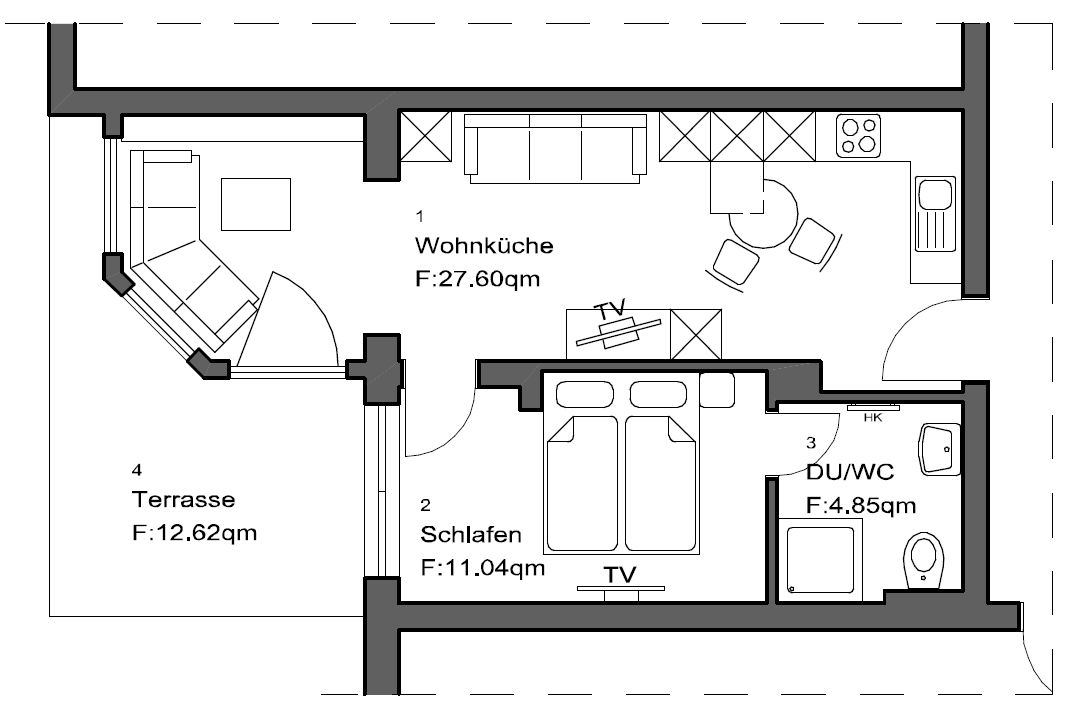 * 1 Schlafzimmer mit Sat-TV