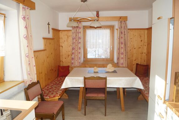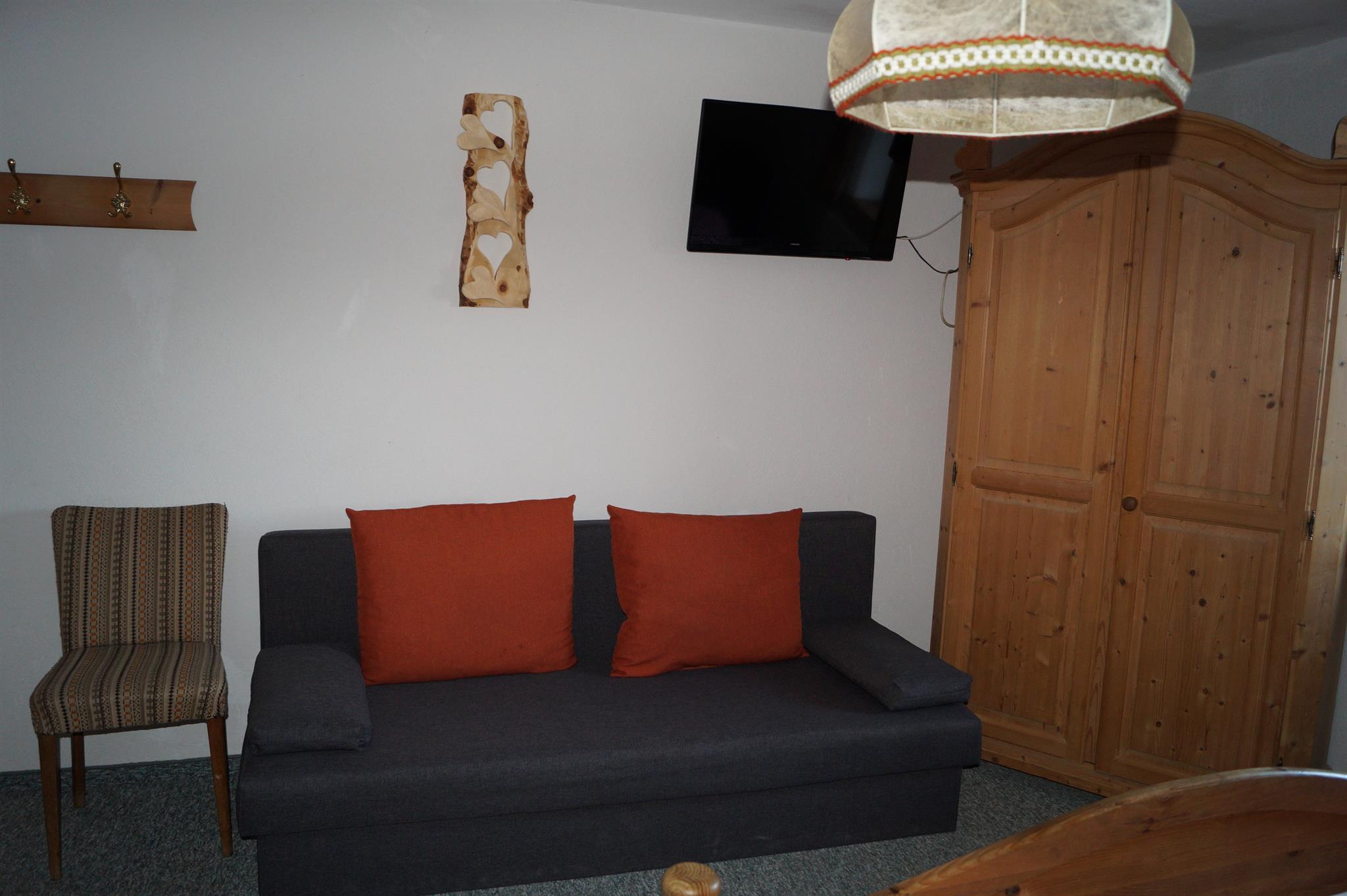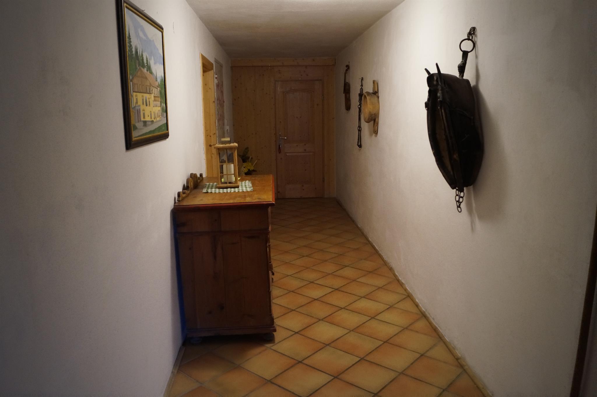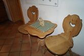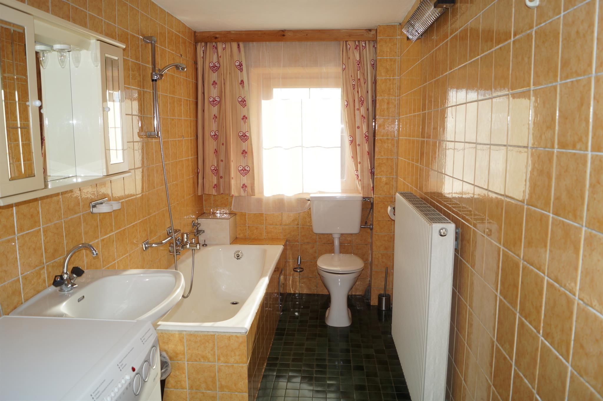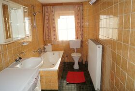 3-Zimmer-Wohnung 90 m2 im 1. Stock, rustikal und gemütlich eingerichtet: 1 Doppelzimmer mit eigener Dusche/WC sowie 2 weitere Doppelzimmer davon jedes Zimmer mit Waschbecken. Küche mit Essecke (4 Kochplatten, Backofen, Geschirrspüler, Mikrowelle). Bad/WC inklusive Waschmaschine.
