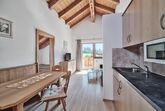 Studio mit Doppelbett, 1 Einzelbett und 1 Doppelcouch ca. 49 m², Bettwäsche, Sitzgruppe und Wohnlandschaft, Küchenzeile, Bettdecken & Polster für Allergiker, Flat-SAT-TV mit Radio, W-LAN, Laminatboden, Dusche/WC, Handtücher, Handtuchtrockner, Haartrockner, Toilettenartikel, Kosmetikspiegel, Bodenheizung, Safe. Für 2-5 Gäste geeignet. Bergpanorama Wilder Kaiser, Ostseite mit Terrasse.