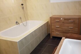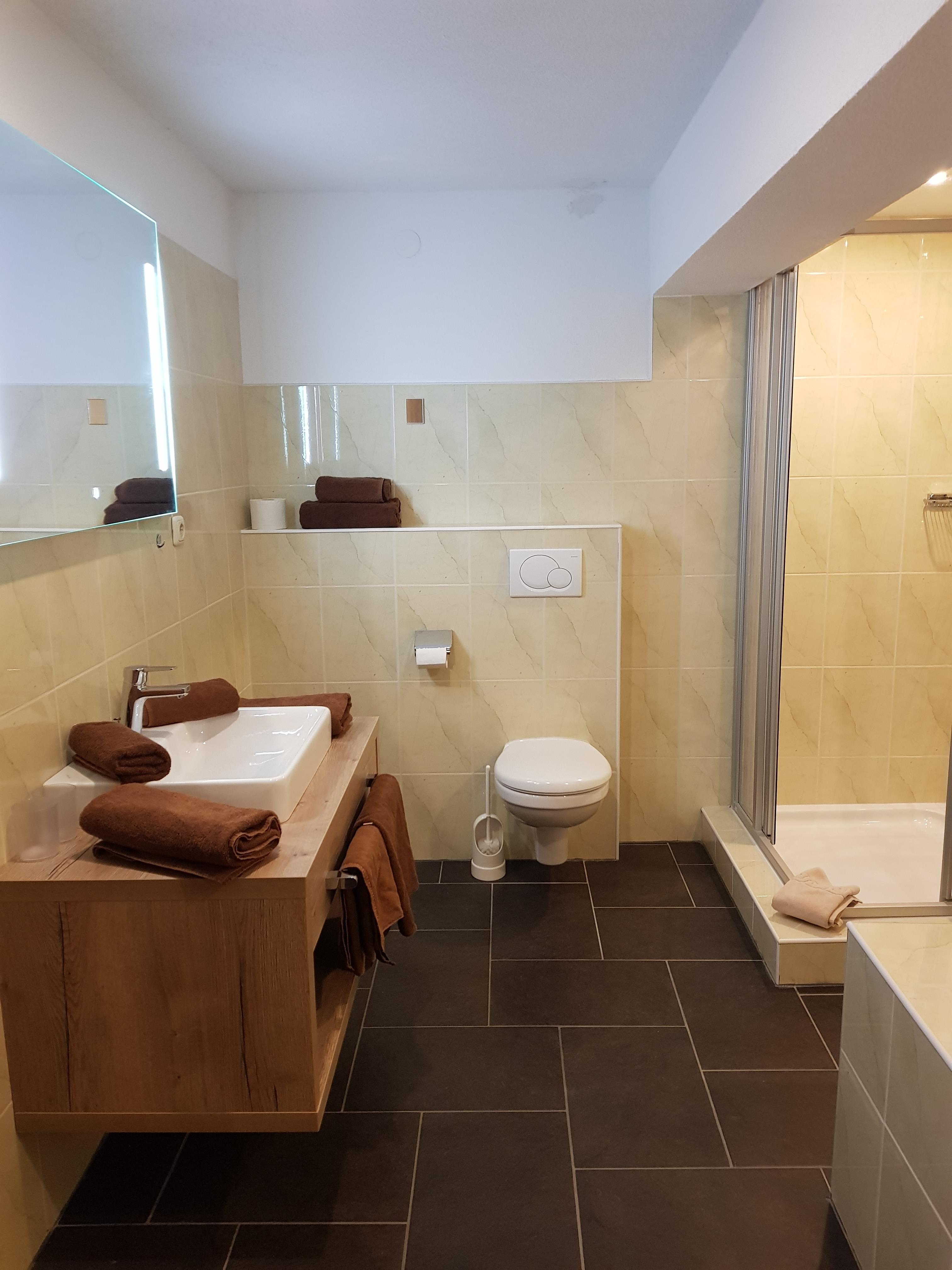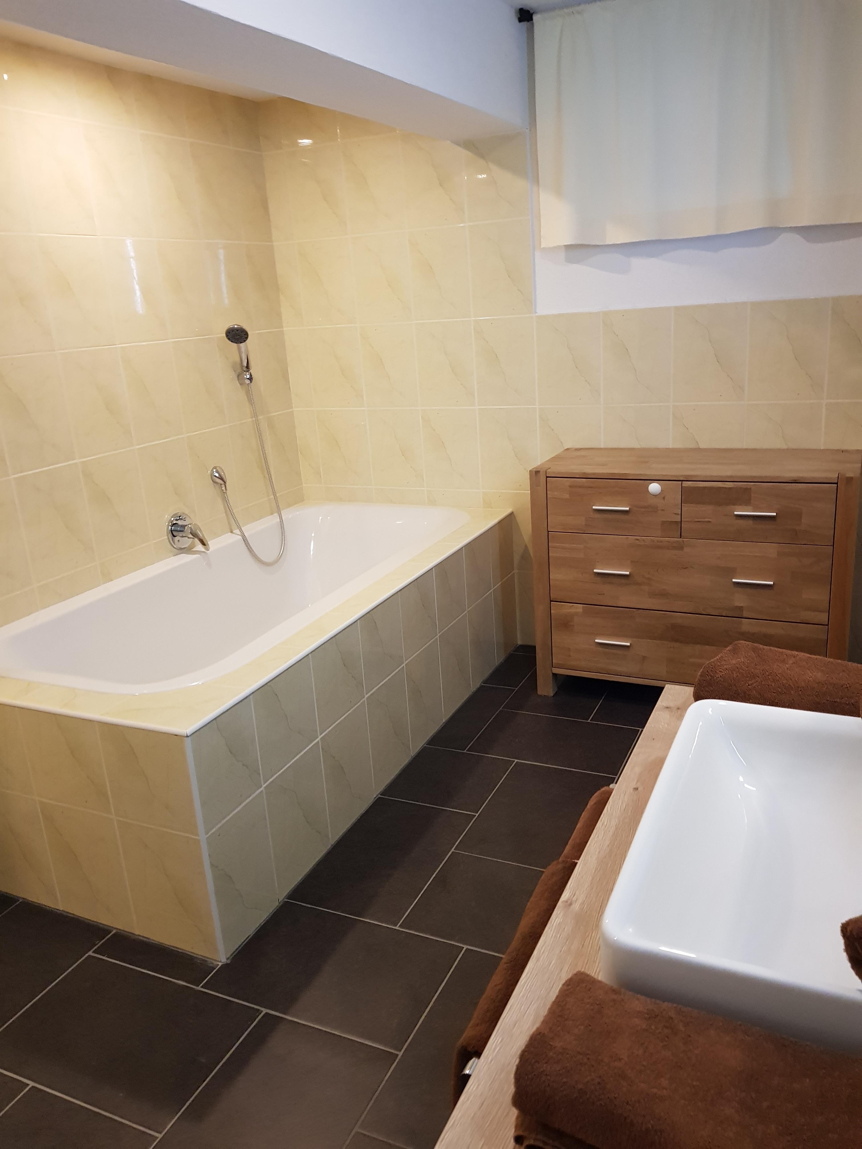 Doppelzimmer ohne FRÜHSTÜCK (ca. 30 m² keine Küche!) im Soutterain (Untergeschoss), Badezimmer mit Badewanne und Dusche/WC, Fußbodenheizung, Fön, Kabel-TV. Das Doppelzimmer verfügt über einen eigenen Zugang zum Lichthof. Das Zimmer wird während des Aufenthaltes nicht gereinigt. Frühstücksmöglichkeit in der Bäckerei nebenan. Gartenmitbenützung, Gartenmöbel vorhanden