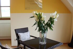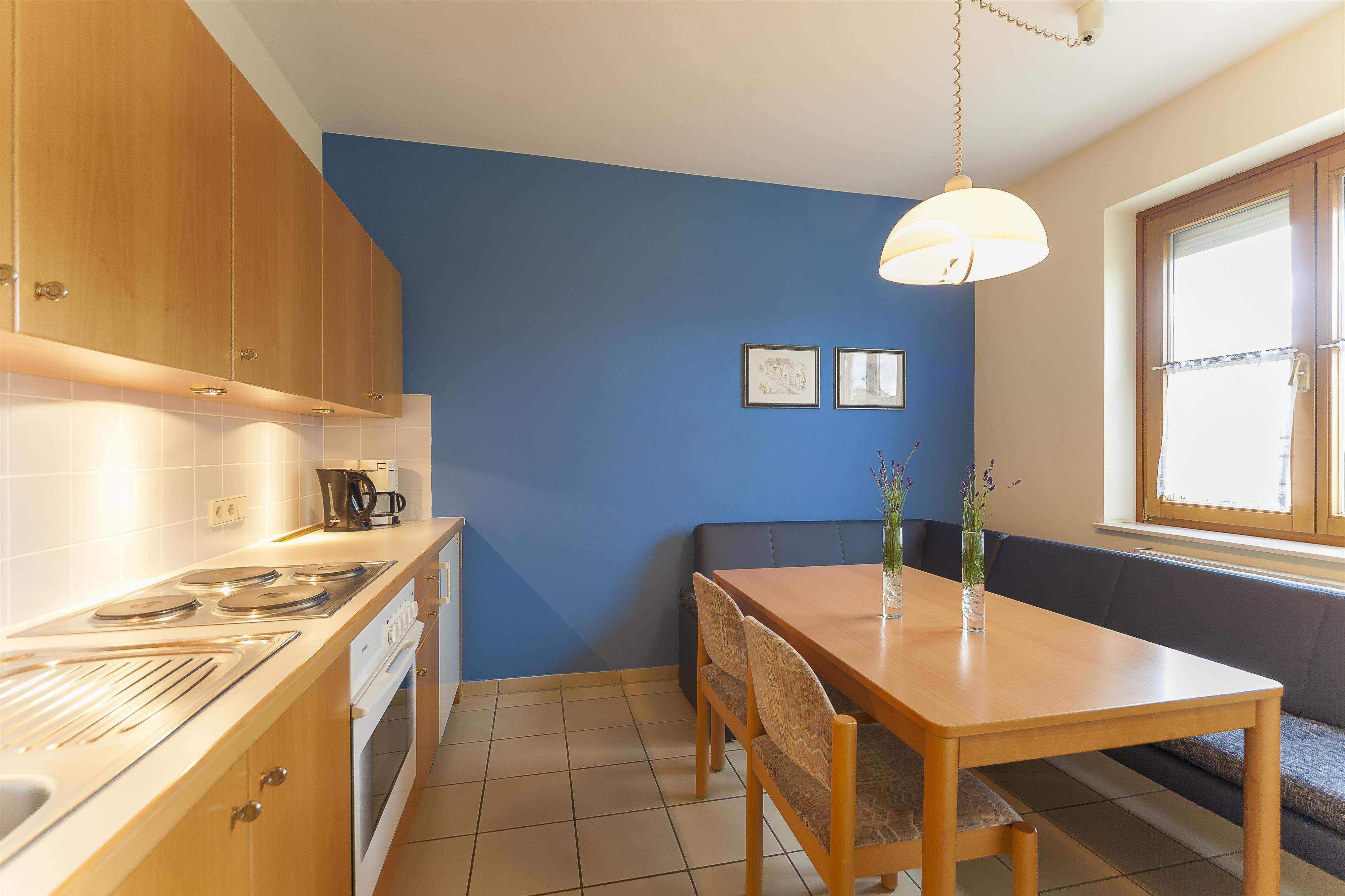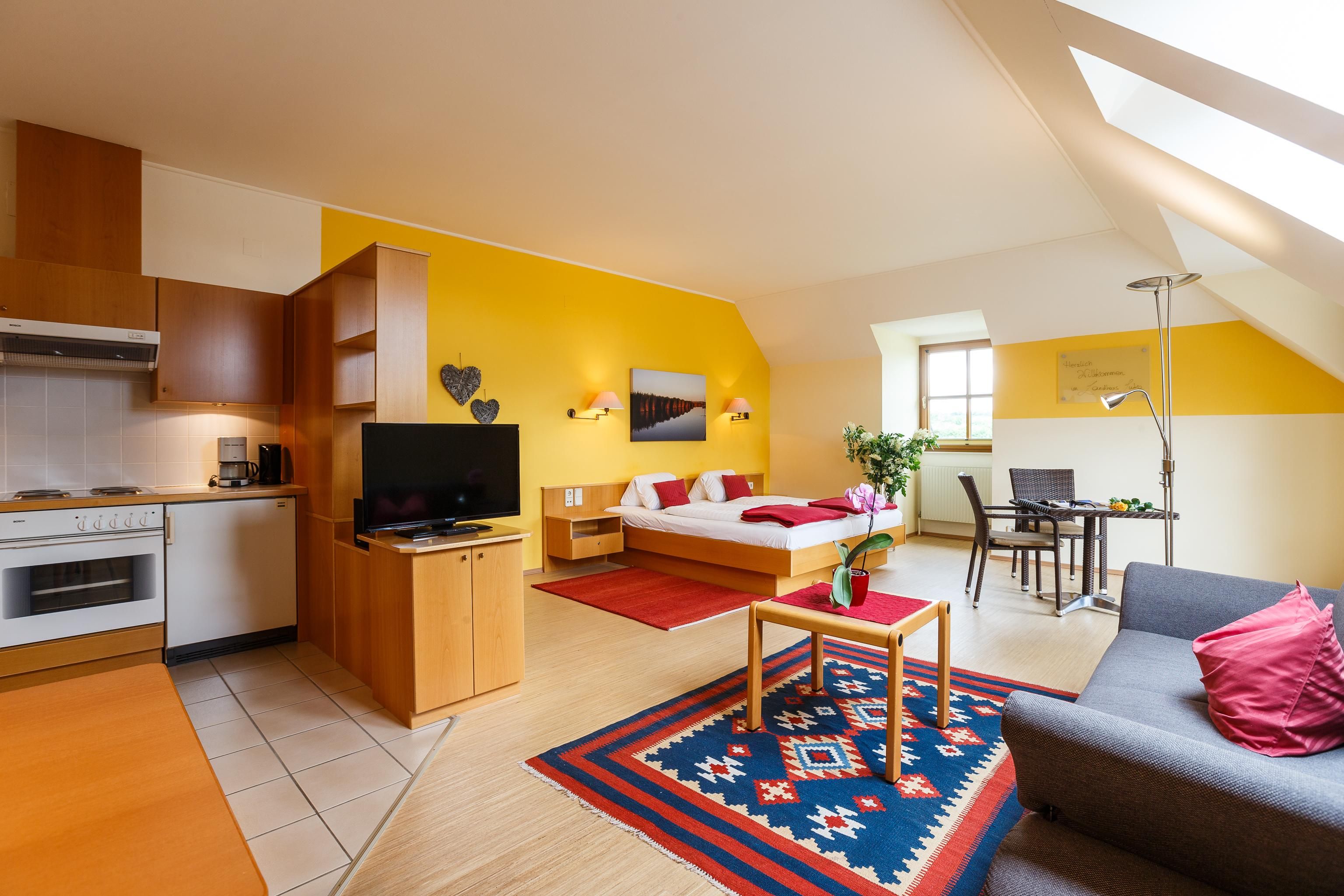 Schön ausgestattetes, gepflegtes Komfort-Appartement mit naturgeöltem Echtholz-Parkett (ca. 45 m²). Ein Wohnraum mit gemütlicher Sitzecke, moderner Küche mit Eßplatz (Eß- und Kochgeschirr vorhanden) und optisch getrennt vom Schlafzimmer (Doppelbett). Balkon, Radio mit CD Player, WellnessDusche, WC. Komplette Wäsche vorhanden, individueller Wäschewechsel! High-Speed-WLan kostenlos.