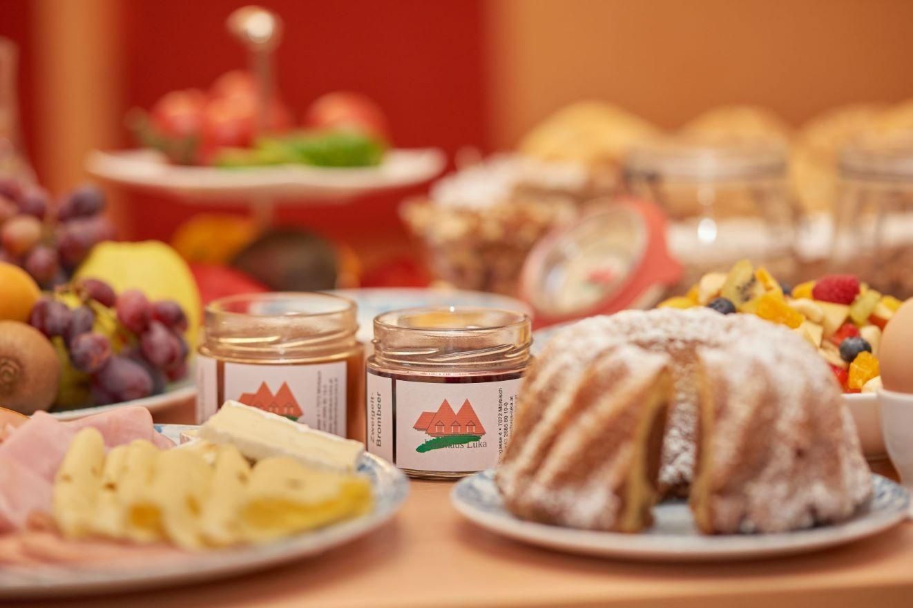 Luka's-Genuss-Frühstück (auf Wunsch) mit hausgemachten Marmeladen, burgenländischen Produkten und Kaffeespezialitäten wie Wiener Melange oder Latte Macchiato auf Knopfdruck.
