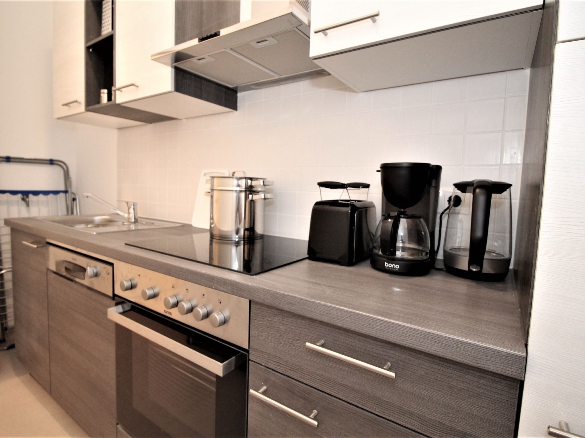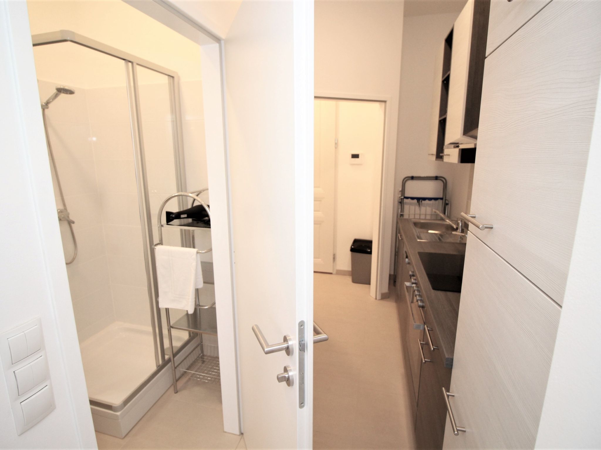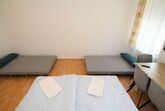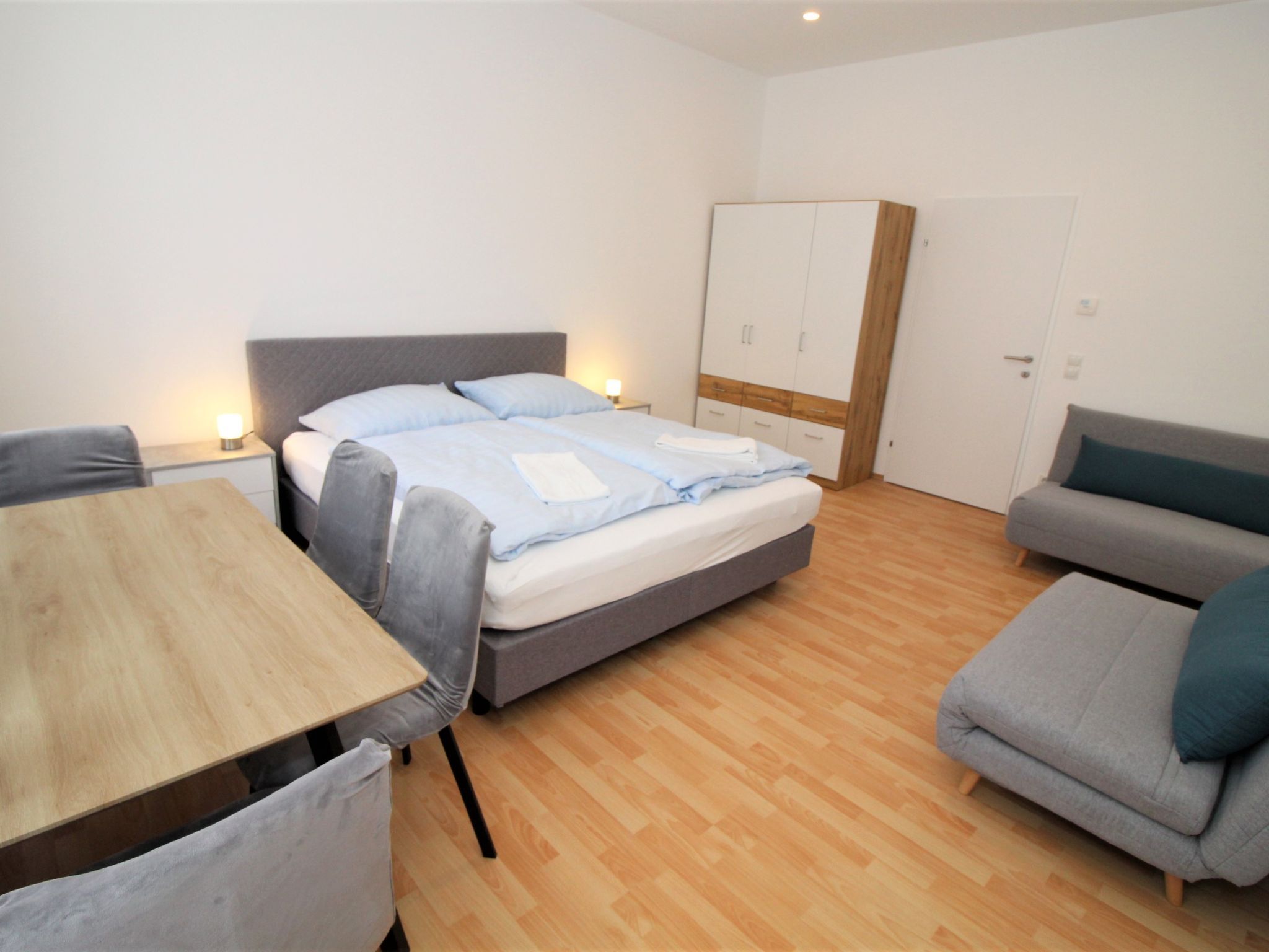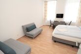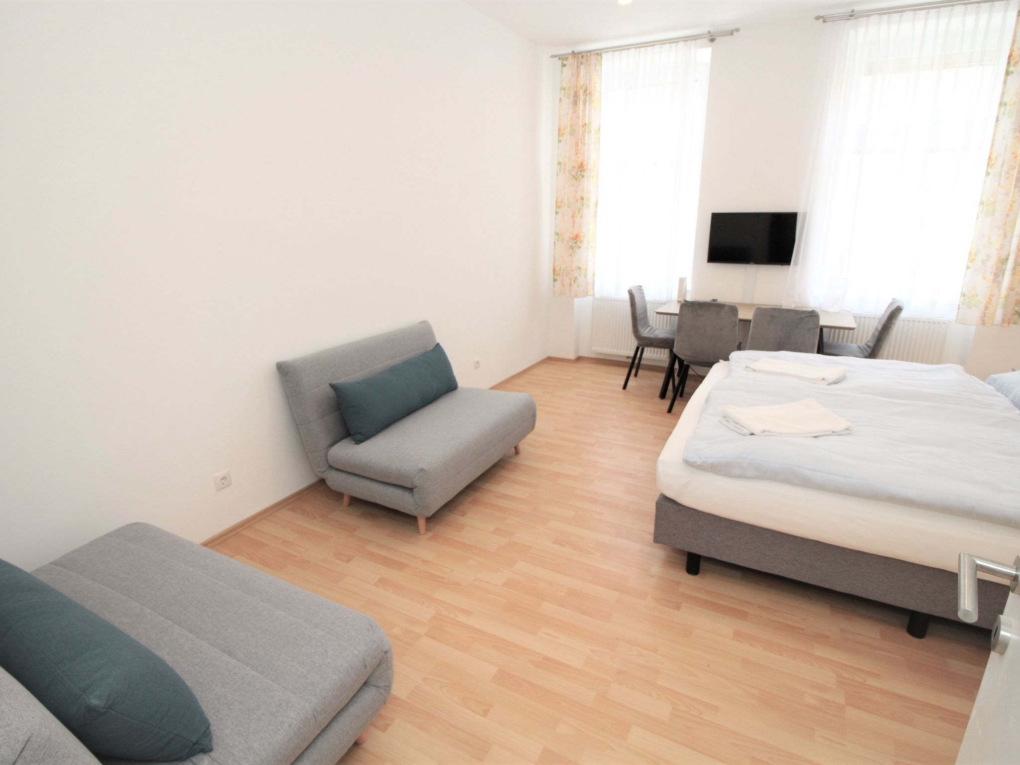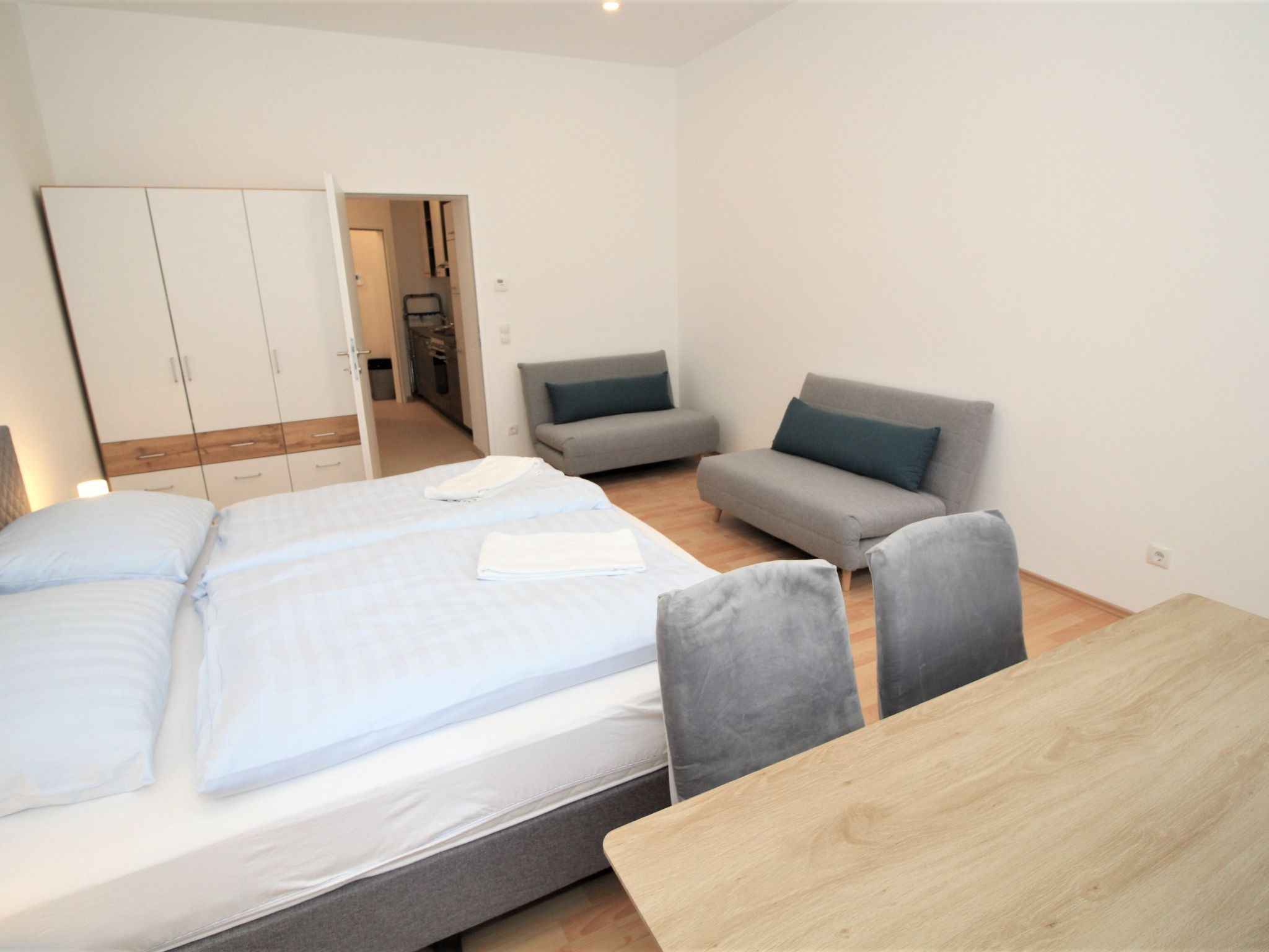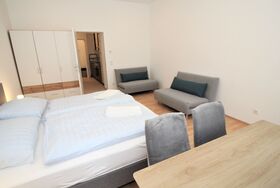 Studio Meidling, 1-Zimmer-Studio 30 m2 im 2. Stock. Vollständig renoviert im Jahre 2022, sehr modern eingerichtet: Wohn-/Schlafzimmer mit 1 Doppeldiwanbett, 2 Ausziehbetten, Esstisch, Kabel-TV, Internationale TV-Sender und Flachbildschirm. Offene Küche im Eingang (Backofen, Geschirrspüler, 4 Glaskeramikplatten, Toaster, Wasserkocher, Tiefkühler, elektrische Kaffeemaschine) mit sep. WC und Dusche. Holzdielenboden. Zur Verfügung: Haartrockner. Internet (WLAN, gratis). Bitte beachten: Nichtraucher-Unterkunft. Kein Fahrstuhl.