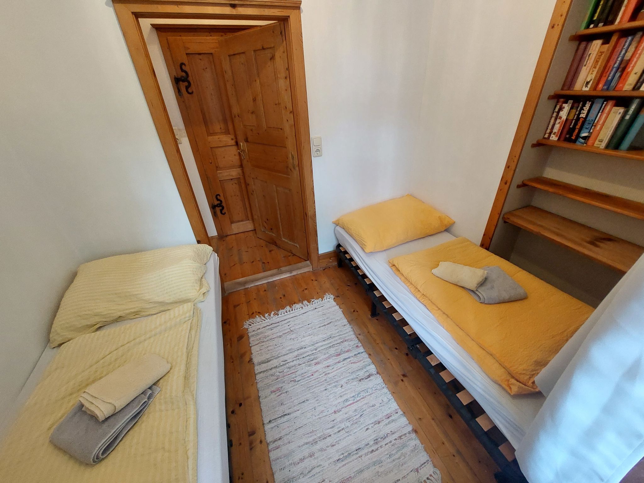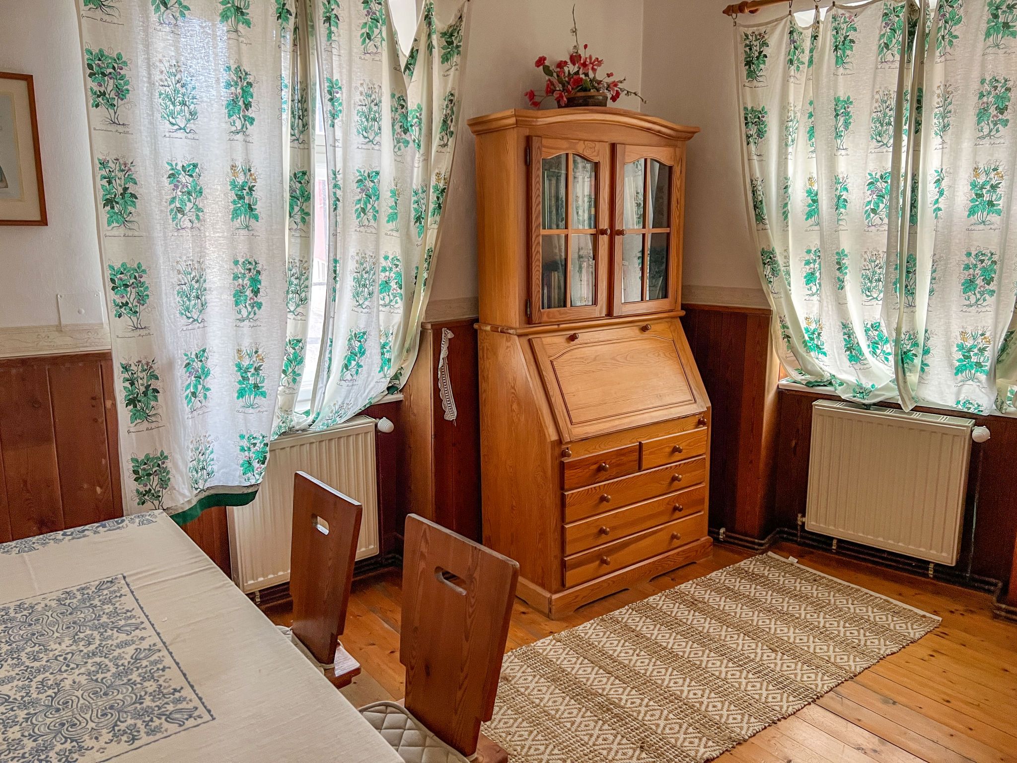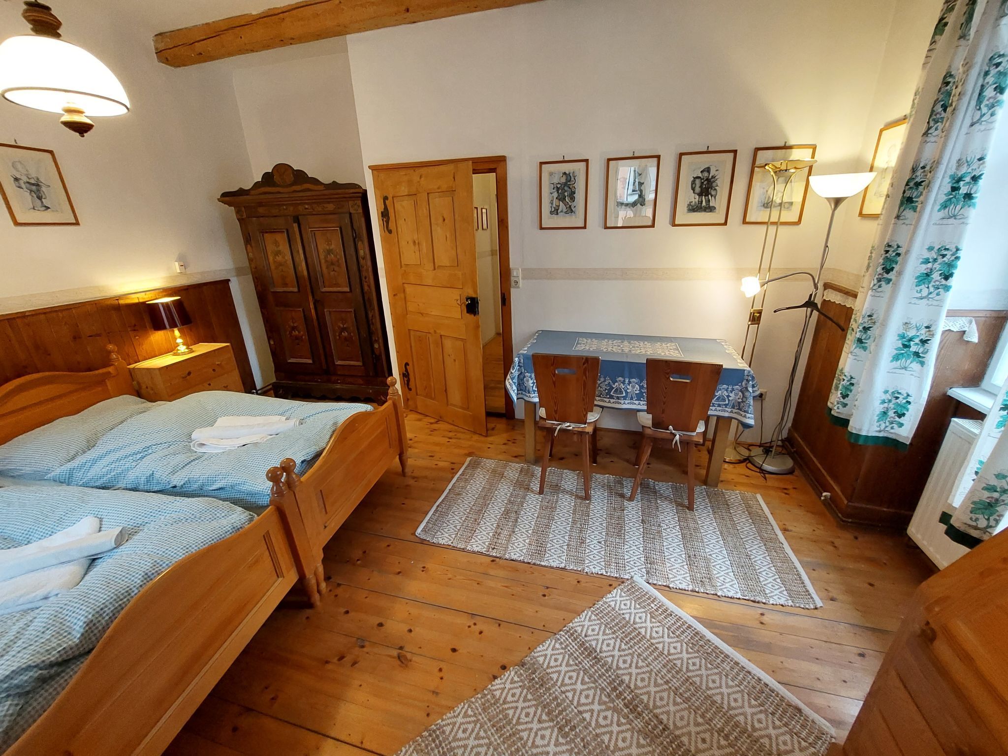 4-Zimmer-Wohnung 120 m2, im Erdgeschoss. Renoviert im Jahre 2022, antik und gemütlich eingerichtet: grosses Wohnzimmer 50 m2 mit 2 Diwanbetten, Sat-TV, DVD und Holzofen. Ausgang zum Garten. Esszimmer. 1 Doppelzimmer. 1 kleines Zimmer mit 2 Betten. Küche (2 Kochplatten, Mini-Backofen, Geschirrspüler, elektrische Kaffeemaschine) mit Durchreiche. Dusche/WC, sep. WC. Fussbodenheizung. Gartensitzplatz. Terrassenmöbel. Zur Verfügung: Kinderhochstuhl, Babybett, Haartrockner. Internet (Wireless LAN, gratis). Bitte beachten: Nichtraucher-Unterkunft.