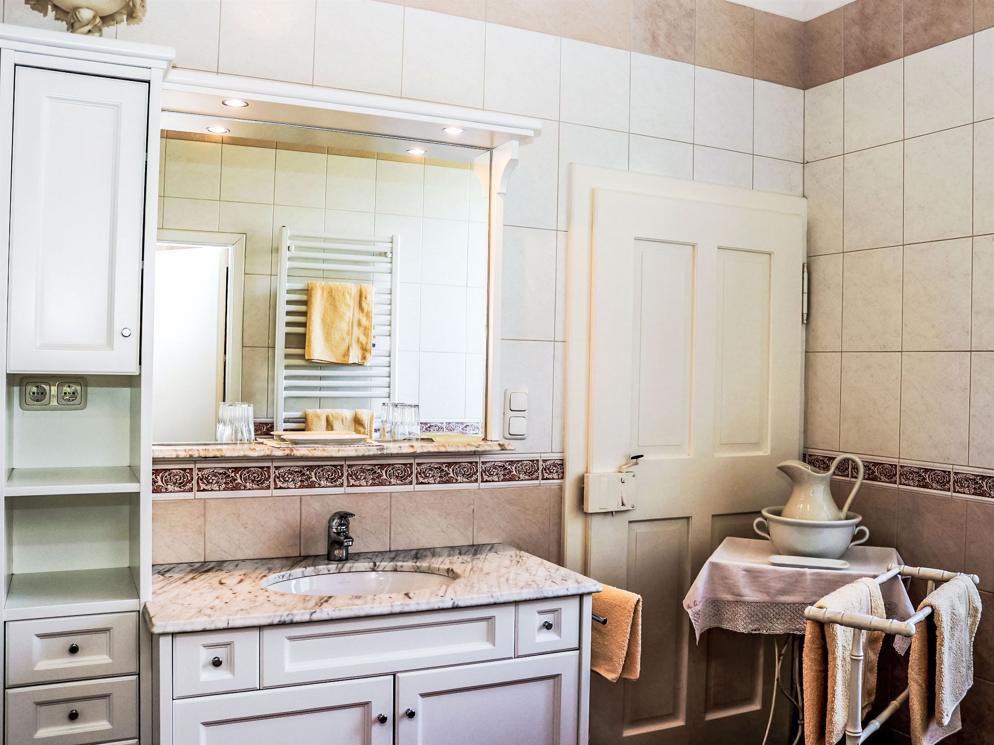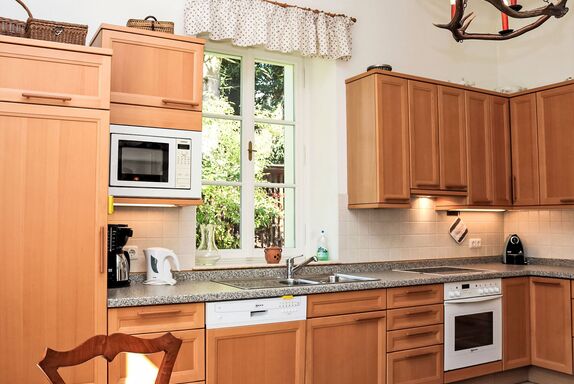 3-Zimmer-Villa 90 m2 auf 2 Stockwerken. Sehr geschmackvoll und stilvoll eingerichtet: Eingang. Wohnzimmer mit Kachelofen. 1 Doppelzimmer mit Dusche/WC. Küche (4 Kochplatten, Backofen, Geschirrspüler, Mikrowelle) mit Essecke. Sep. WC. Obergeschoss: 1 Doppelzimmer mit Kabel-TV. Dusche/WC. Bodenheizung. Terrasse überdacht. Terrassenmöbel, Abstellkammer. Schöne Sicht auf den Garten. Zur Verfügung: Waschmaschine. Internet (Wireless LAN, gratis). Parkplatz (überdacht, 2 Autos) beim Haus. Bitte beachten: Nichtraucher-Haus. Die Möbel in der Rosenvilla sind original Biedermeier. Im Wohnzimmer befindet sich ein Flügel. Bei Belegung mit weniger Personen als der maximalen Personenzahl stehen nicht alle Wohneinheiten zur Verfügung.