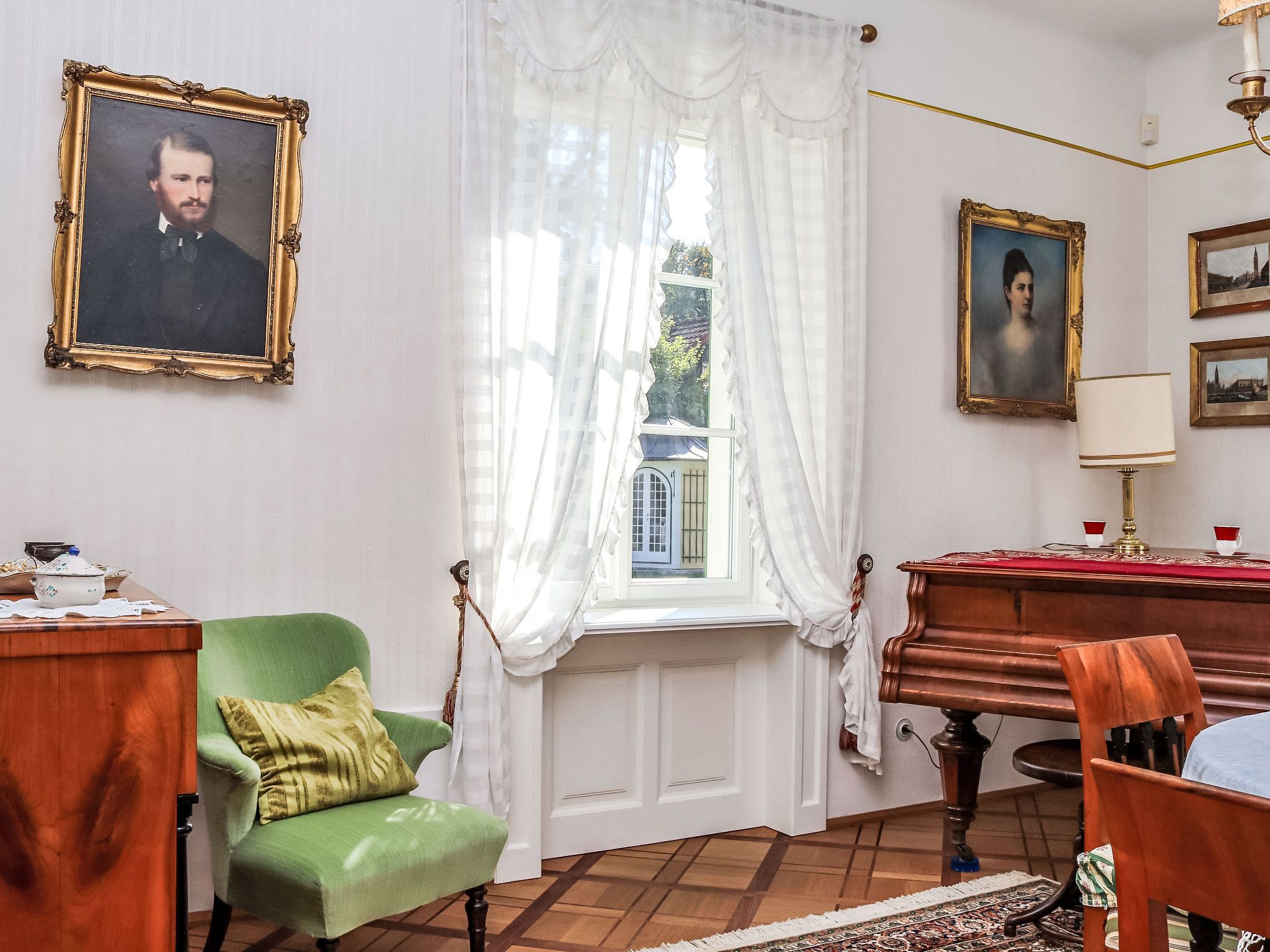 Im Kurpark gelegener historische Villa Rosenvilla, aus dem 19. Jahrhundert, renoviert. Zentrale, sonnige Lage. Zur Alleinbenutzung: Park 1'700 m2 mit wunderschöner Garten zum Entspannen. Supermarkt 200 m, Restaurant 100 m, Fußgängerzone 200 m, Bushaltestelle 541,546 130 m, Bahnstation Bad Ischl 1 km, Thermalbad Eurothermenressort Bad Ischl 800 m. Golfplatz (18 Loch) 6 km, Tennis 3 km, Luftseilbahn 5 km, Skilift 21 km. Nahe gelegene Sehenswürdigkeiten: Stadtmuseum Bad Ischl 30 m, Kongress- und Theaterhaus Ischl 50 m, Franz Lehar Filmtheater 500 m, Kaiservilla 900 m, UNESCO Welterbeort Hallstatt 21 km. Bekannte Skigebiete sind gut erreichbar: Feuerkogel Ebensee 20 km. Bekannte Seen in der Umgebung sind gut erreichbar: Wolfgangsee 13 km, Attersee und Traunsee 19 km. Wandergebiete: Nussensee, Katrinalm, Postalm. Bitte beachten: nicht geeignet für Kinder unter 10 Jahren. Die Schlüsselübergabe findet bei der Agentur SKGT Touristik in Götzstr. 12 statt, 1 km. Die Nachbarschaft ist sehr lärmempfindlich. Ruhe und gutes Benehmen wird erwartet. Das Musikerschlössl wurde komplett restauriert und ist mit den originalen Möbeln eingerichtet. Im grossen Biedermeiergarten mit Springbrunnen steht ein Pavillon. Hier wohnen Sie im Herzen einer einzigartigen Landschaft und verfügen gleichzeitig über das bunte Freizeitangebot eines bezaubernden Städtchens.