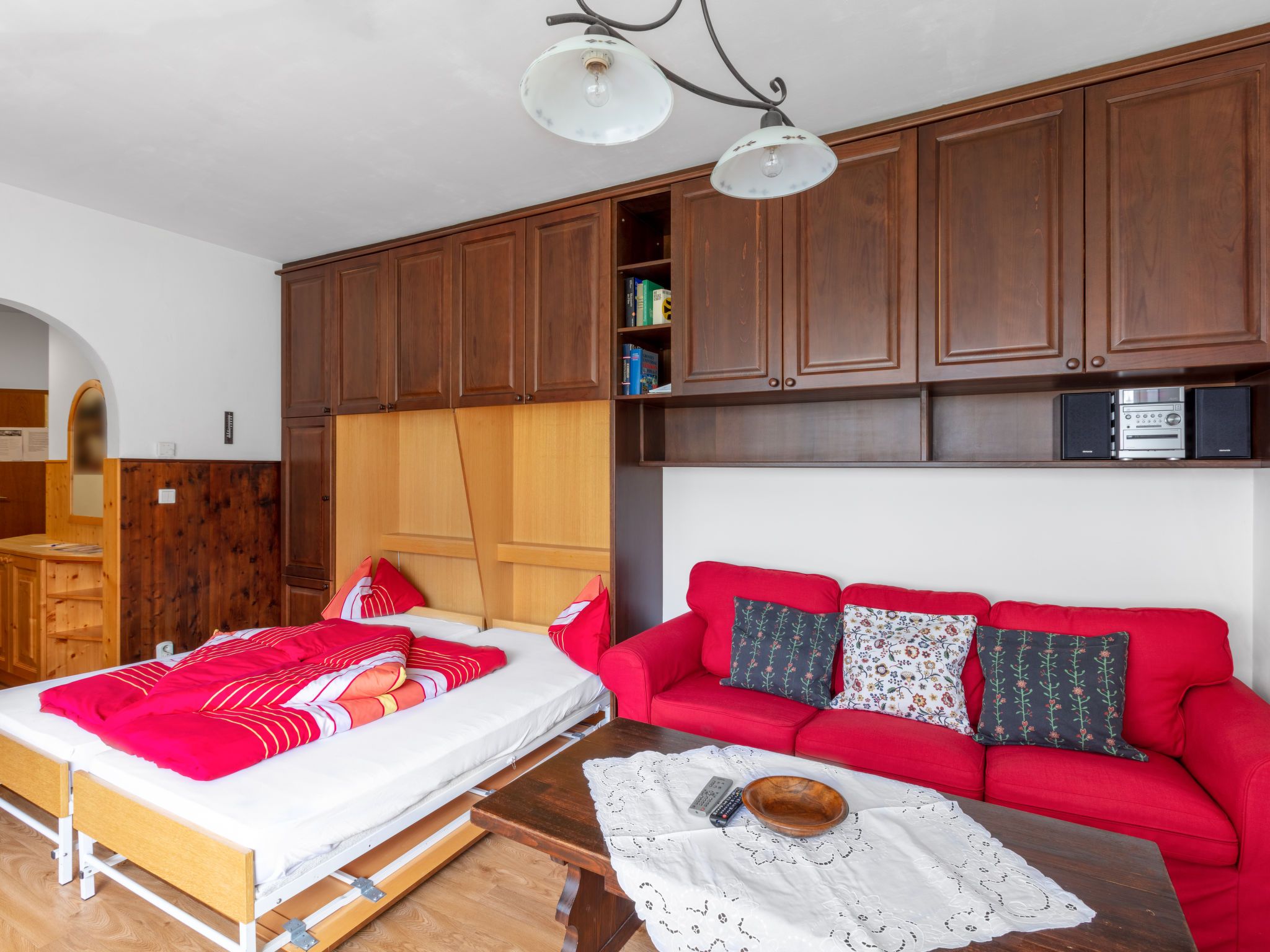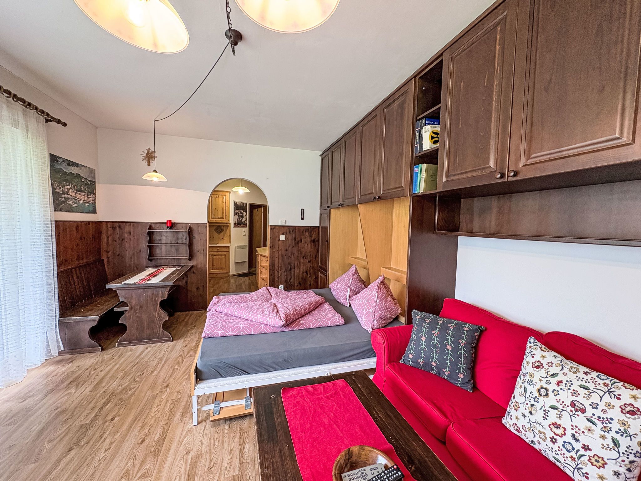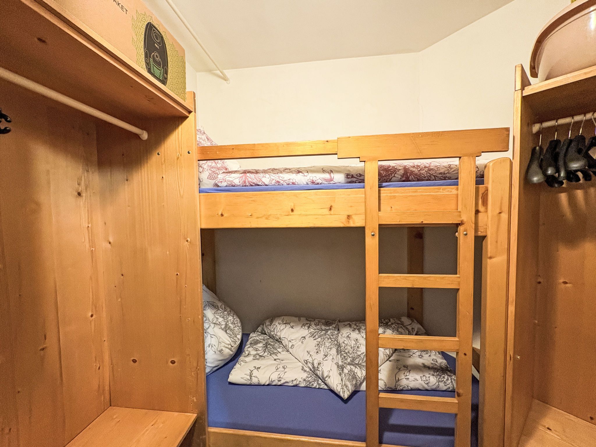 Dachstein Top 2, 2-Zimmer-Wohnung 42 m2, im Erdgeschoss. Objekt geeignet für 2 Erwachsene + 2 Kinder. Einfach und gemütlich eingerichtet: Wohn-/Schlafzimmer mit 2 Wandklappbetten (90 cm, Länge 200 cm), Essecke und Kabel-TV (Flachbildschirm), Radio. Ausgang zur Loggia. Kabine mit 1 x 2 Etagenbetten. Offene Küche im Eingang (4 Kochplatten, Backofen). Bad/WC. Balkon, Südlage und Ostlage. Balkonmöbel. Seitliche Sicht auf die Landschaft. Zur Verfügung: Internet (WLAN, gratis). Bitte beachten: Rauchmelder. Anstelle eines abgeschlossenen Schlafzimmers befinden sich manche Schlafplätze in einem offenen Bereich (Galerie, Nische etc.). 50408-000602-2021