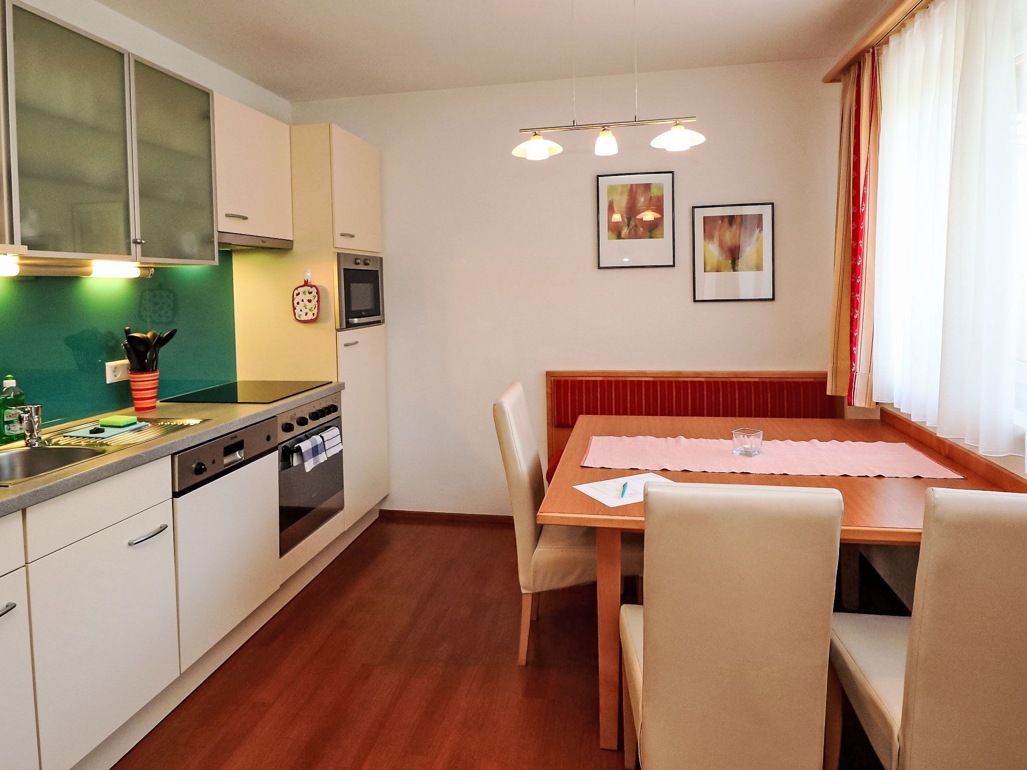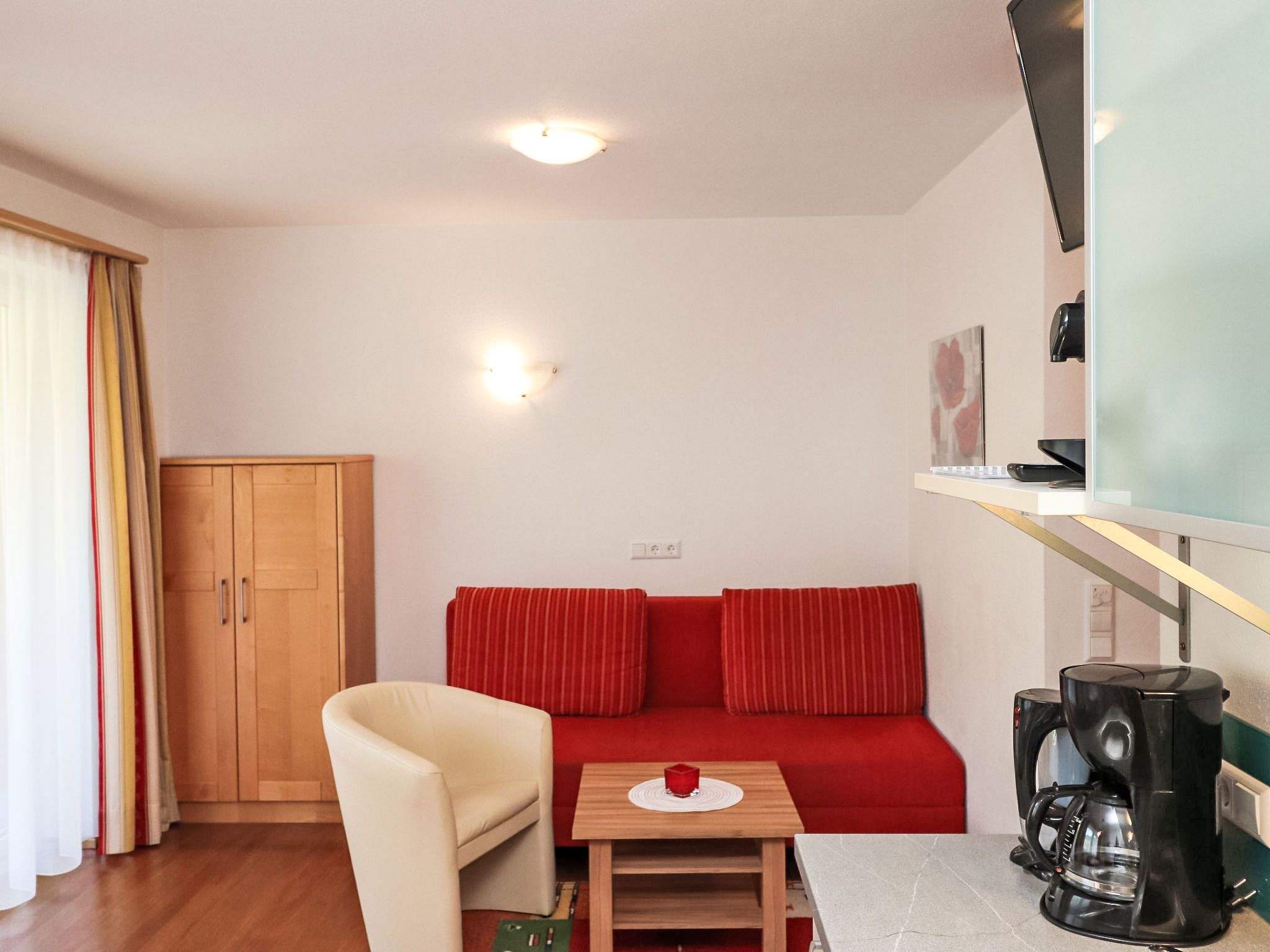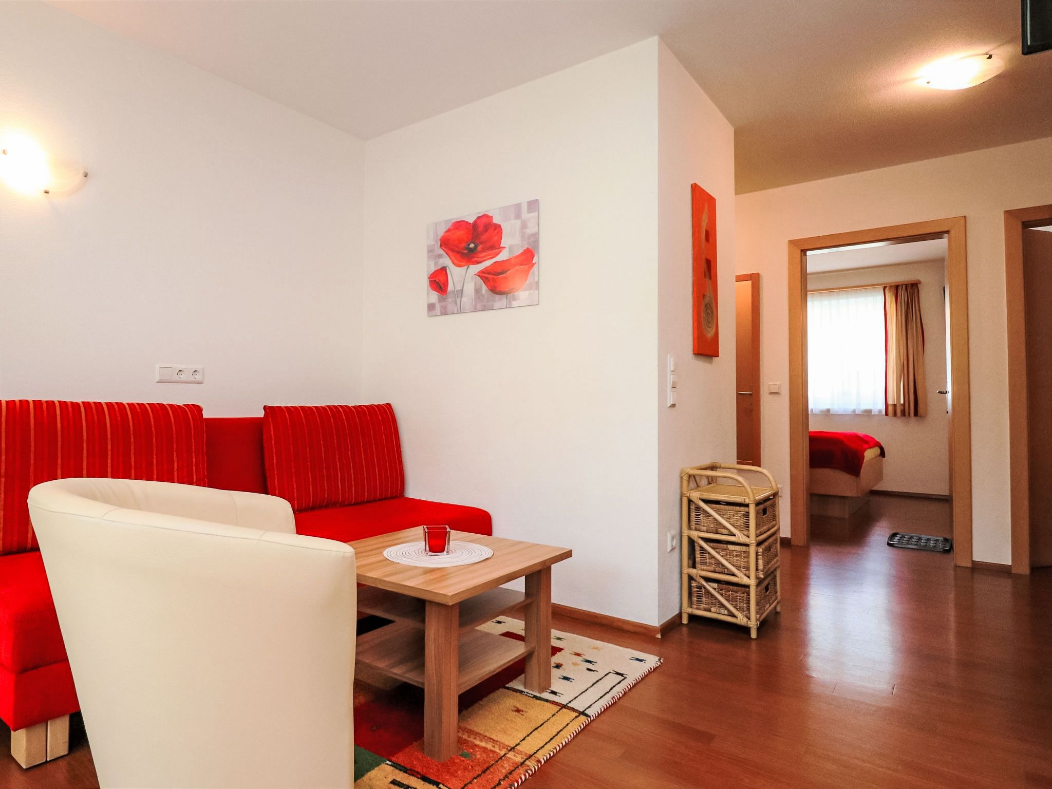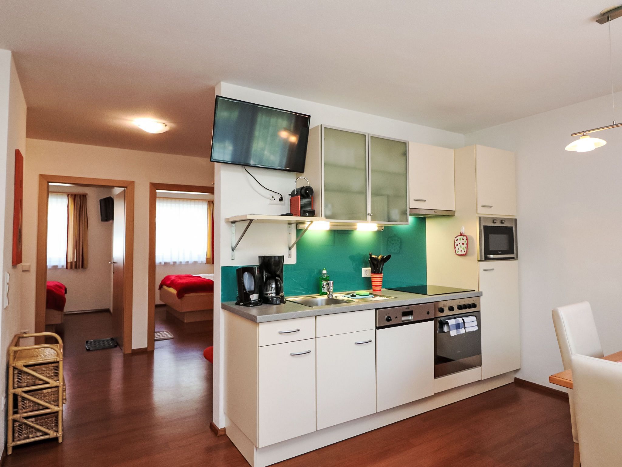 3-Zimmer-Wohnung 55 m2, im Erdgeschoss. Komfortabel und modern eingerichtet: 2 Doppelzimmer. Wohn-/Esszimmer mit Kabel-TV und Radio. Offene Küche (Backofen, Geschirrspüler, 4 Glaskeramikplatten, Toaster, Wasserkocher, Mikrowelle, elektrische Kaffeemaschine, Kapseln für die Kaffeemaschine (Nespresso), Racletteofen, Fondue Set (Chinoise)) mit Esstisch. Dusche, sep. WC. Terrasse. Terrassenmöbel. Zur Verfügung: Haartrockner. Internet (Wireless LAN, gratis). Maximal 1 Haustier/Hund erlaubt. 50409-000093-2020