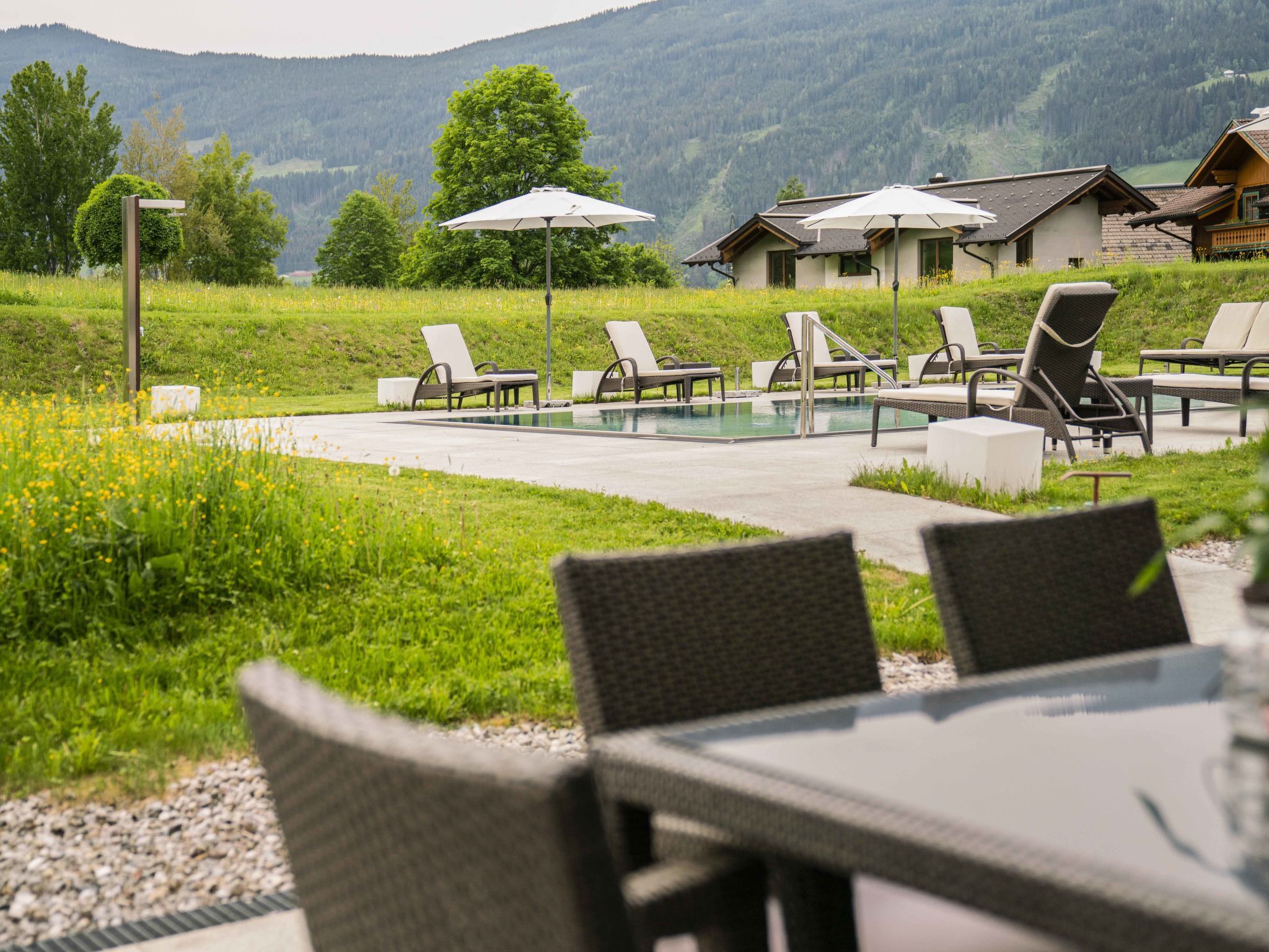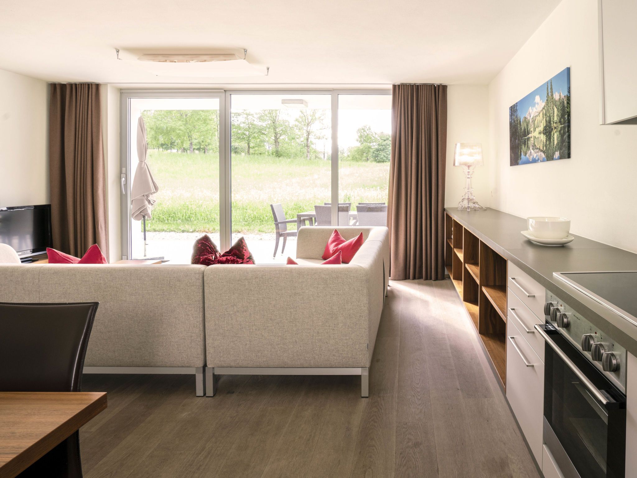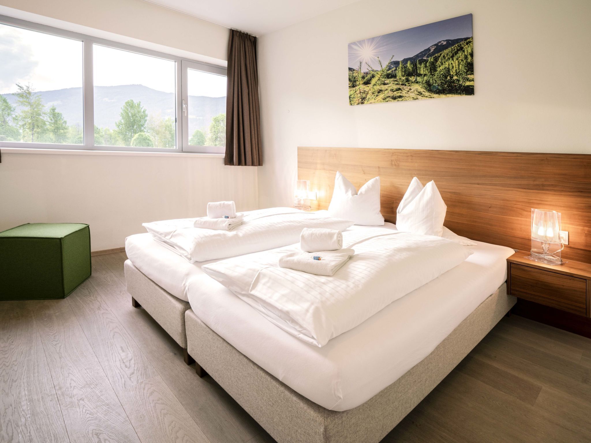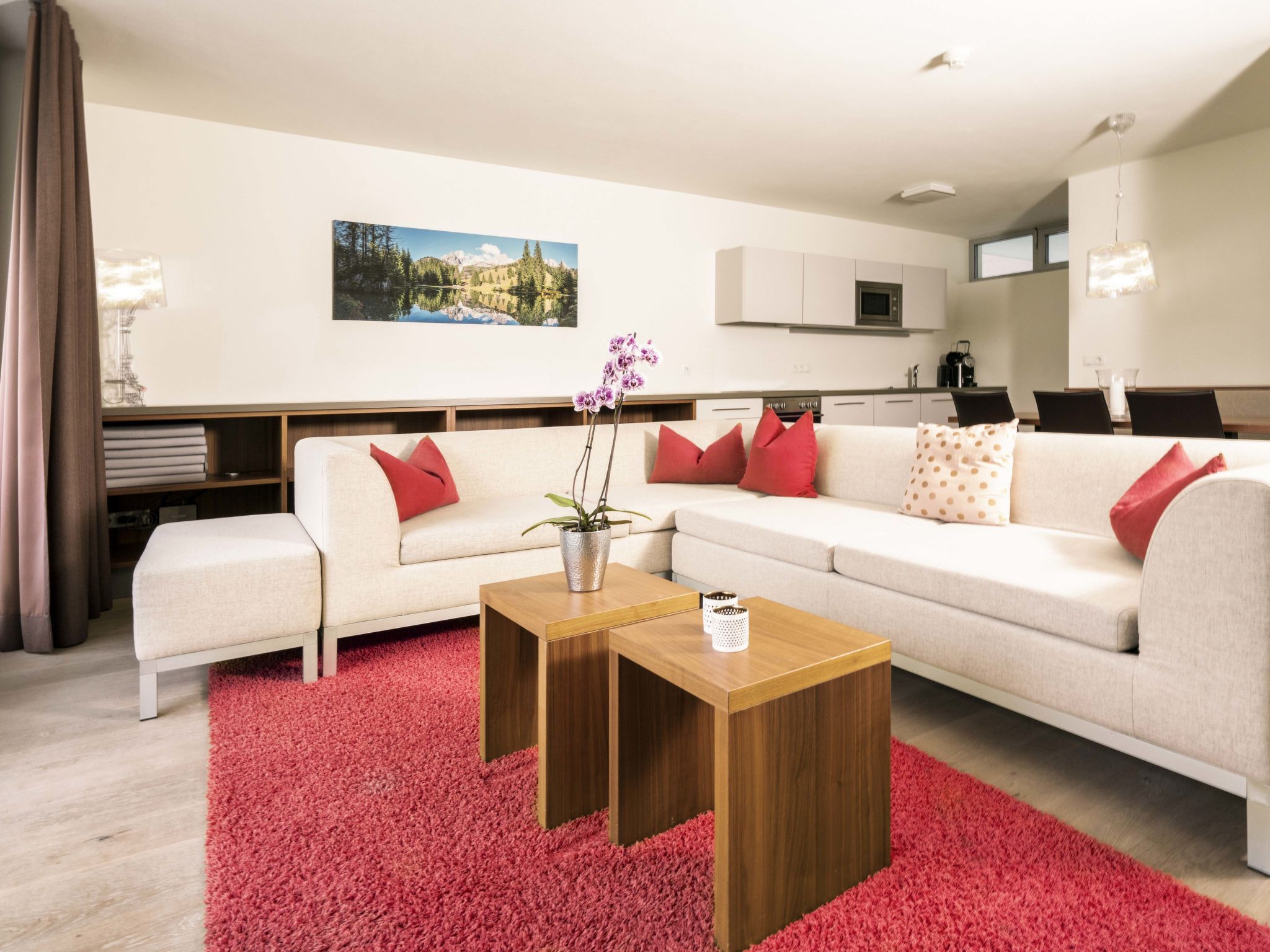 Radstadt: Moderne Ferienanlage Tauernresidence by Alps Resorts. 5 km vom Zentrum, ruhige, sonnige Lage, 1.7 km vom Skigebiet, im Grünen. Zur Mitbenutzung: Schwimmbad (saisonale Verfügbarkeit: 13.Mai. und 11.Sep.). Im Hause: Sauna, Fitnessraum, Dampfbad, Infrarotwärmekabine, Wellnessbereich zur Mitbenutzung, Zentralheizung. Parkplatz beim Haus. E-Ladestation. Supermarkt 500 m, Restaurant 500 m, Freibad 3.3 km, Thermalbad Therme Amadé 6 km. Golfplatz (18 Loch) 50 m, Skisportanlagen 1.7 km. Nahe gelegene Sehenswürdigkeiten: Dachstein 30 km, Salzbergwerk 58 km, Hallstatt 63 km, Lichtensteinklamm 25 km, Stadt Salzburg 70 km, Eisriesenwelt 35 km. Bekannte Skigebiete sind gut erreichbar: Skischaukel Radstadt Altenmarkt 1.7 km. Wandergebiete: Fageralm 2 km. Das Foto ist nur ein Wohnungsbeispiel.