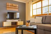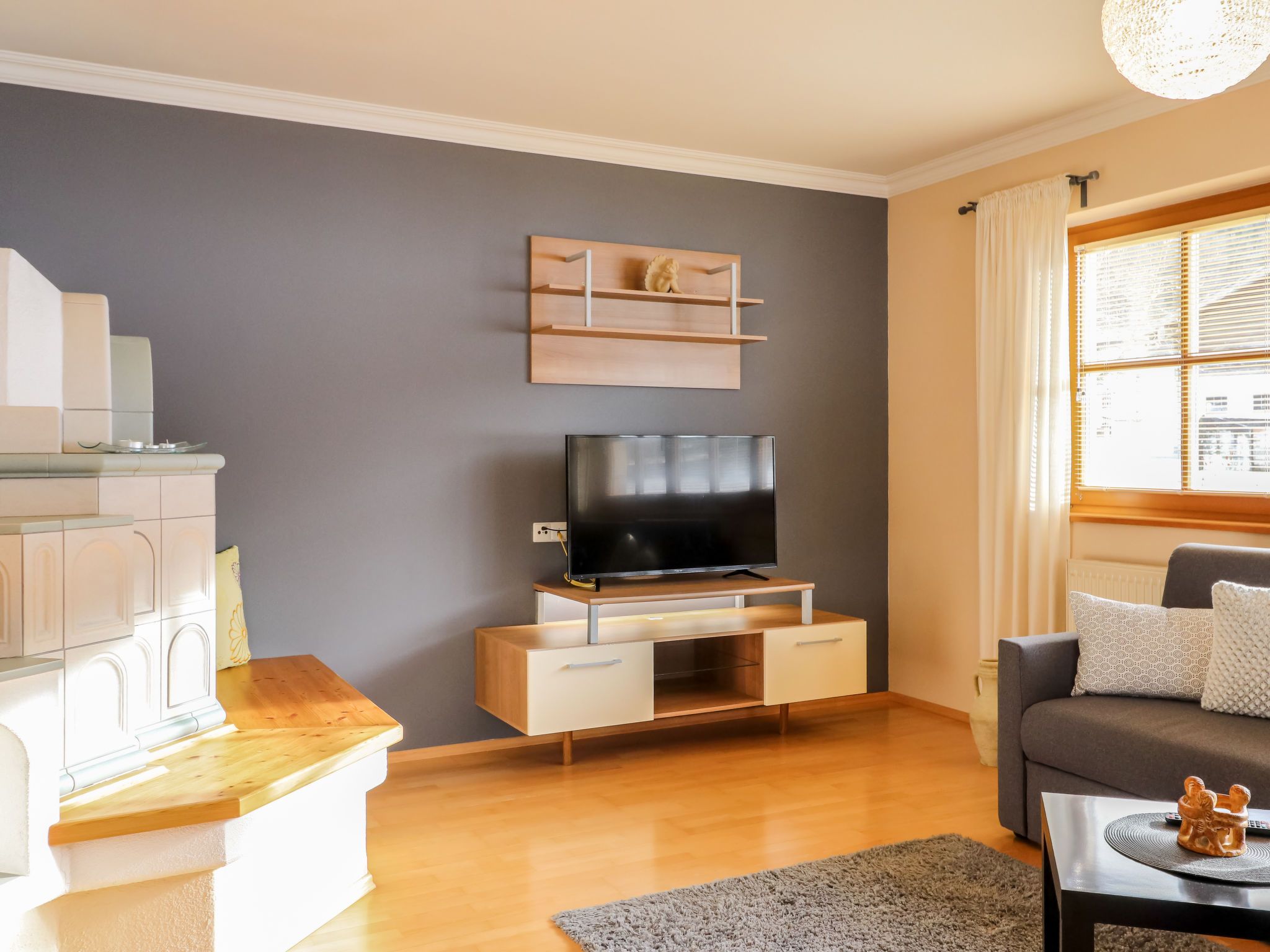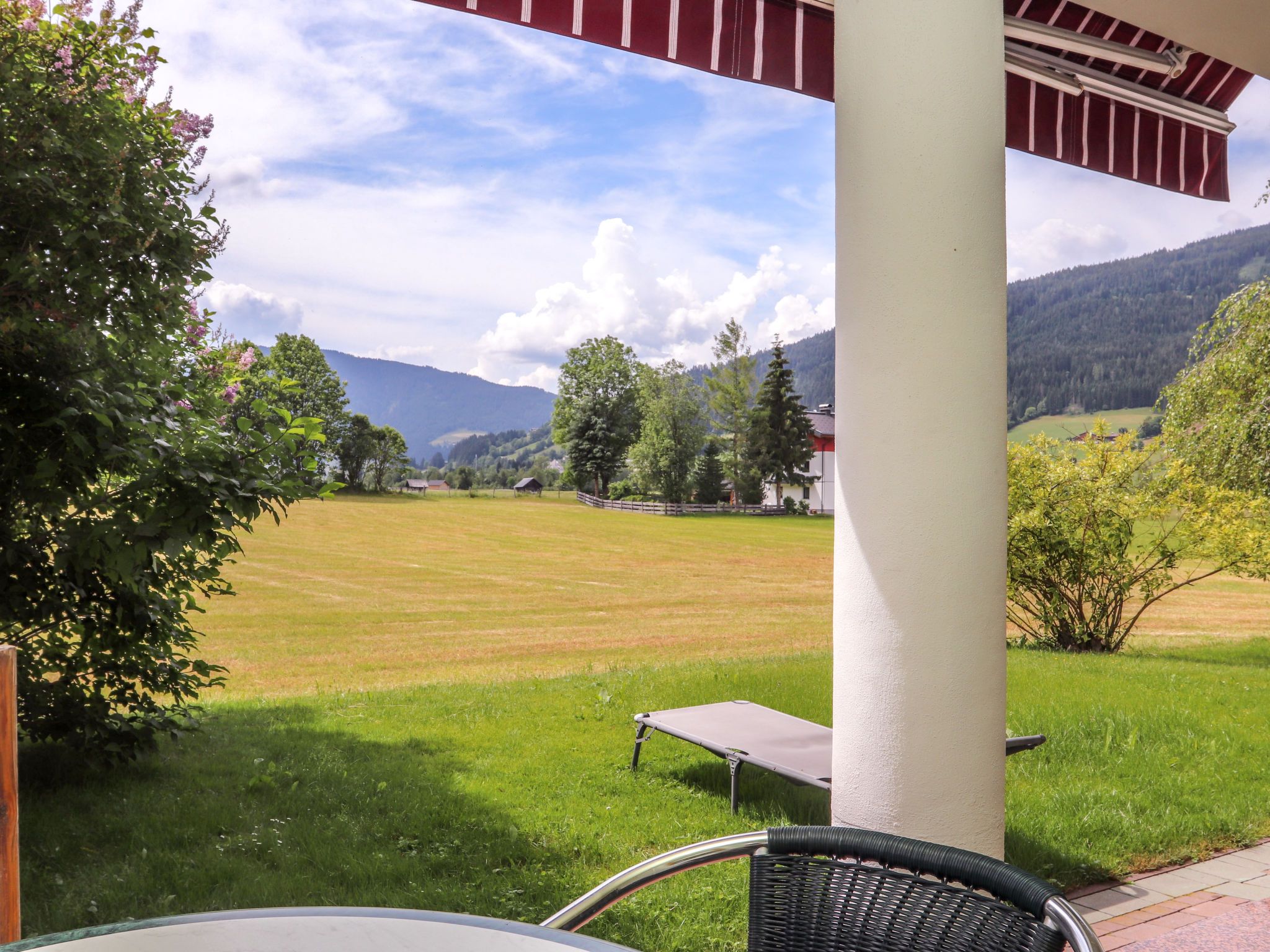 Ennstal, 4-Zimmer-Wohnung 104 m2, im Erdgeschoss. Geräumig, komfortabel und geschmackvoll eingerichtet: Eingang. 1 Zimmer mit 1 franz. Bett (140 cm). 1 Doppelzimmer mit Kabel-TV (Flachbildschirm). Grosses Wohn-/Schlafzimmer mit 2 Diwanbetten und Kabel-TV (Flachbildschirm), Kachelofen. Ausgang zur Terrasse. Grosse Wohnküche (Backofen, Geschirrspüler, 4 Glaskeramikplatten, Mikrowelle, Tiefkühler, elektrische Kaffeemaschine, Dampfgarer) mit Esstisch, Kabel-TV (Flachbildschirm). Bad/Dusche, sep. WC mit Eckbadewanne. Natursteinboden. Terrasse überdacht, Südlage und Westlage. Terrassenmöbel, Liegestühle, Abstellkammer. Sehr schöne Sicht auf die Berge und die Landschaft. Zur Verfügung: Haartrockner. Internet (WLAN, gratis). Bitte beachten: geeignet für Familien. Nichtraucher-Unterkunft. Feuerlöscher. Der Kachelofen wird auf Wunsch vom Vermieter beheizt. 50417-000-308-2020