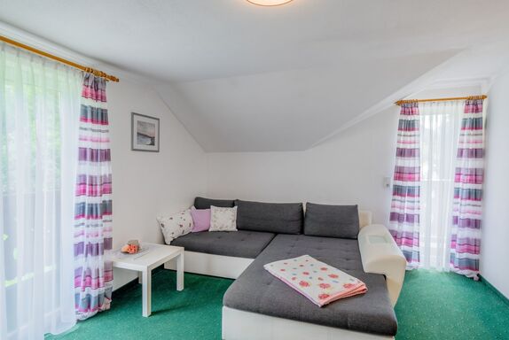 4-Zimmer-Wohnung 86 m2, im Obergeschoss. Gemütlich eingerichtet: Wohn-/Esszimmer mit Essecke und Sat-TV. 2 Doppelzimmer. Wohn-/Schlafzimmer mit 1 Doppeldiwanbett und Sat-TV. Ausgang zum Balkon. Offene Küche (4 Kochplatten, Backofen, Geschirrspüler, Mikrowelle, Tiefkühler). Dusche, sep. WC. 2 Balkone. Schöne Sicht auf die Berge und die Landschaft. Zur Verfügung: Internet (Wireless LAN, gratis). Maximal 1 Haustier/Hund erlaubt. Komplett renoviert 2023! 50411-004015-2020