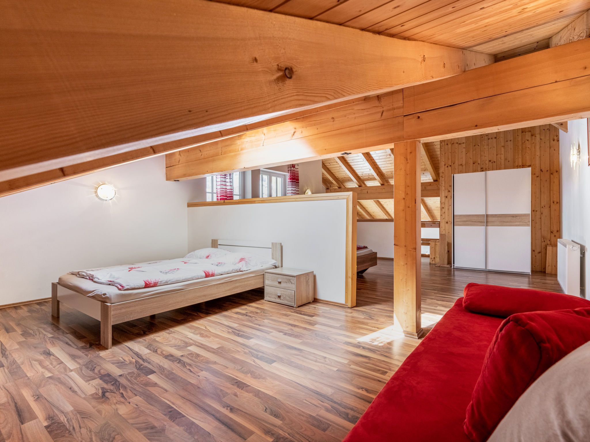 Rot, 2-Zimmer-Maisonette-Wohnung 70 m2 im 1. Stock. Geräumig und hell: Eingang. Wohn-/Esszimmer mit Esstisch und Sat-TV (Flachbildschirm). Offene Küche (Backofen, Geschirrspüler, 4 Glaskeramikplatten, Mikrowelle). Dusche/WC. Obergeschoss: 1 offenes grosses Zimmer mit 1 Doppeldiwanbett und 2 Doppelbetten. Balkon. Balkonmöbel. Schöne Panoramasicht auf die Berge. Zur Verfügung: Kinderhochstuhl, Babybett bis 3 Jahre. Internet (Wireless LAN, gratis). Bitte beachten: Nichtraucher-Unterkunft. Rauchmelder. 50410-000116-2020